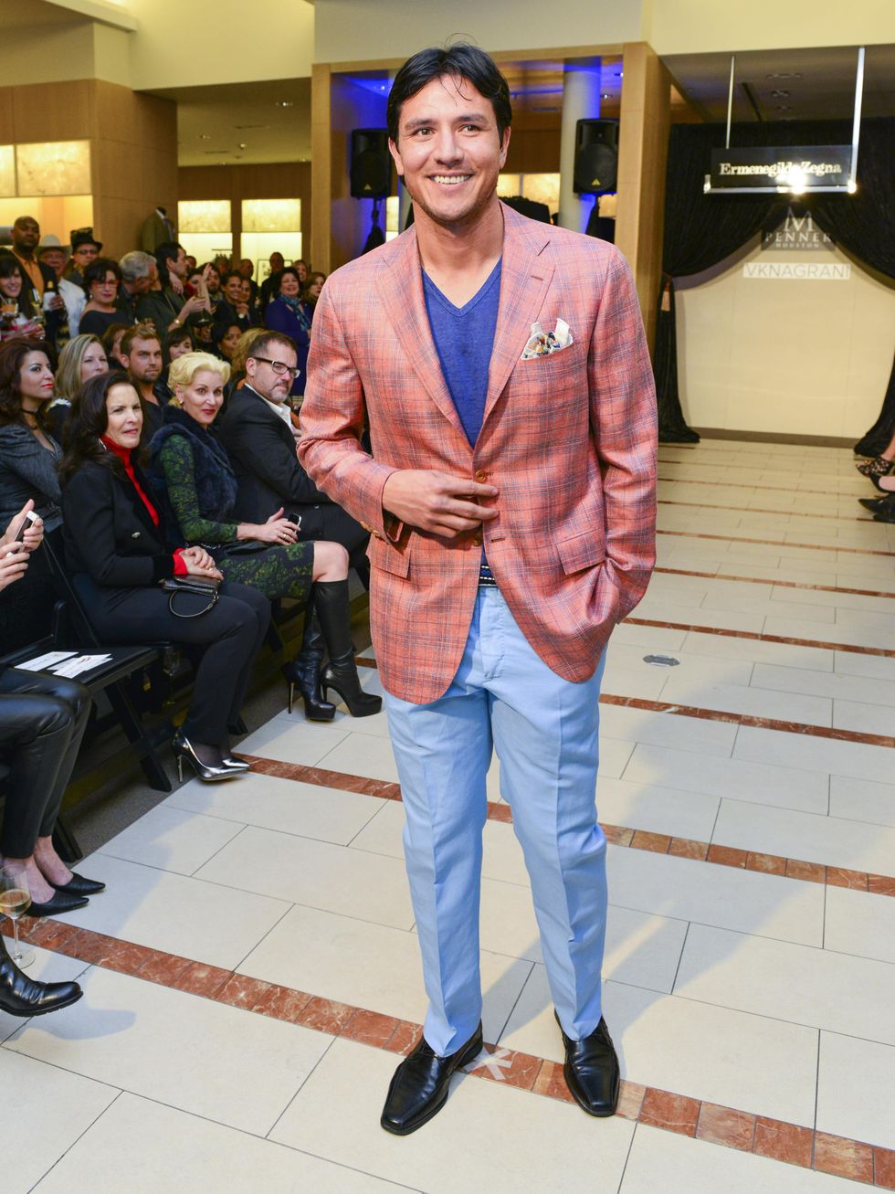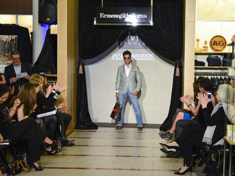 As for his catwalk run, soccer star turned sports executive Brian Ching could have vied with Adam Levine for sexiest man alive honors. Add Bob Cavnar, Robert Del Grande, Astley Blair, Henry Richardson, David Peck, Michael Mithoff, Jerry Lasco and Jared Lang to the beefcake parade.