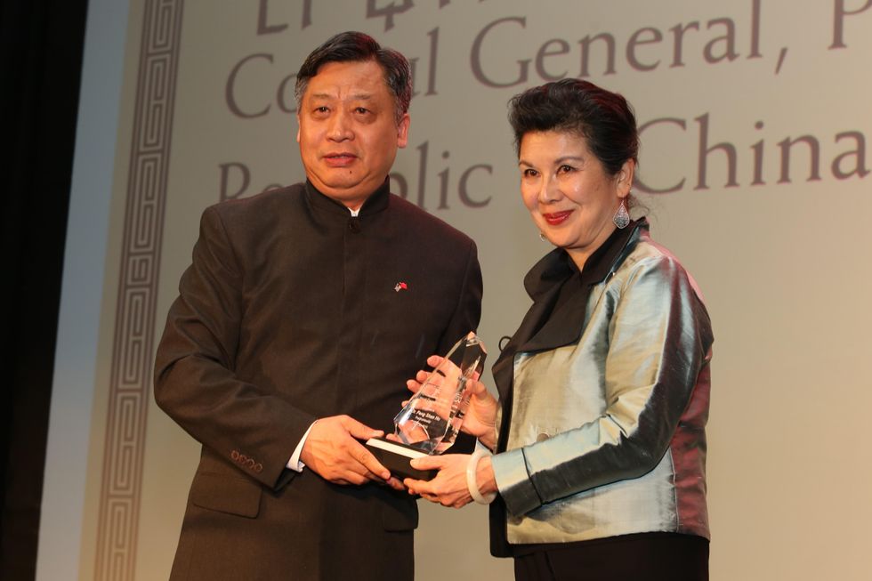 The prestigious honors were awarded posthumously to Dr. Feng Shan Ho of China and Chiune Sugihara of Japan. Honorary dinner chair Chinese Consul General Li Qiangmin presented Ho's award to the late doctor's daughter, Manli Ho, Chinese Consul General in Vienna. Japanese Consul General Nozomu Takaoka presented Sugihara's award to the late diplomat's granddaughter, Madoka Sugihara, vice consul general for Japan in Lithuania; his daughter-in-law Michi Sugihara; and great-granddaughter, Oriha Sugihara.