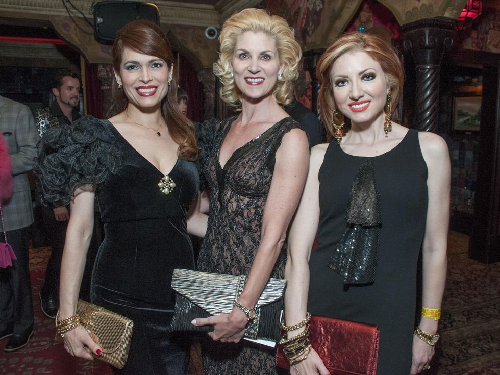 Given the LBD theme, Yasmine Haddad, Miya Shay and Jessica Rossman wore black — Haddad in sleeveless Valentino, Shay in a breezy Alexander McQueen dress that accentuated her baby bump and Rossman in a form-fitting black leather dress emblazoned with a red heart and the words "True Love" that she found in a New York vintage store.