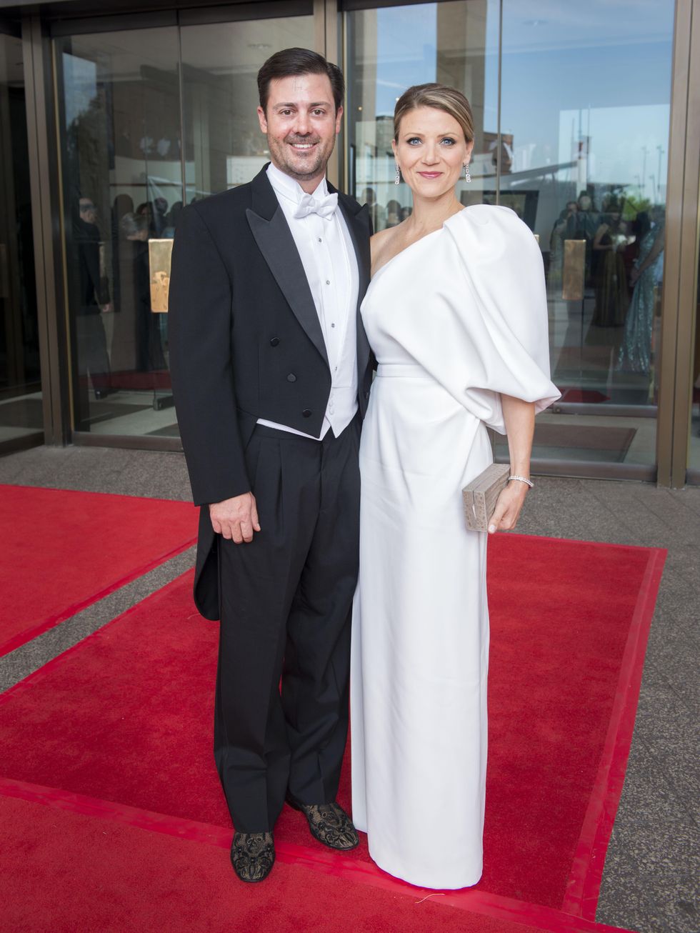 In a setting resplendent with vast bouquets of coral-hued peonies and crystal candelabra, guests dined on a spectacular dinner by Jackson and Co., which closed with a dessert of little chocolate grand pianos filled with chocolate mousse. As dessert was served, the Richard Brown Orchestra let loose with the tunes that had the dance floor instantly packed. It was so packed that staff had to quickly move the Harry Mach table several feet west to provide room for the enthusiastic dancers.