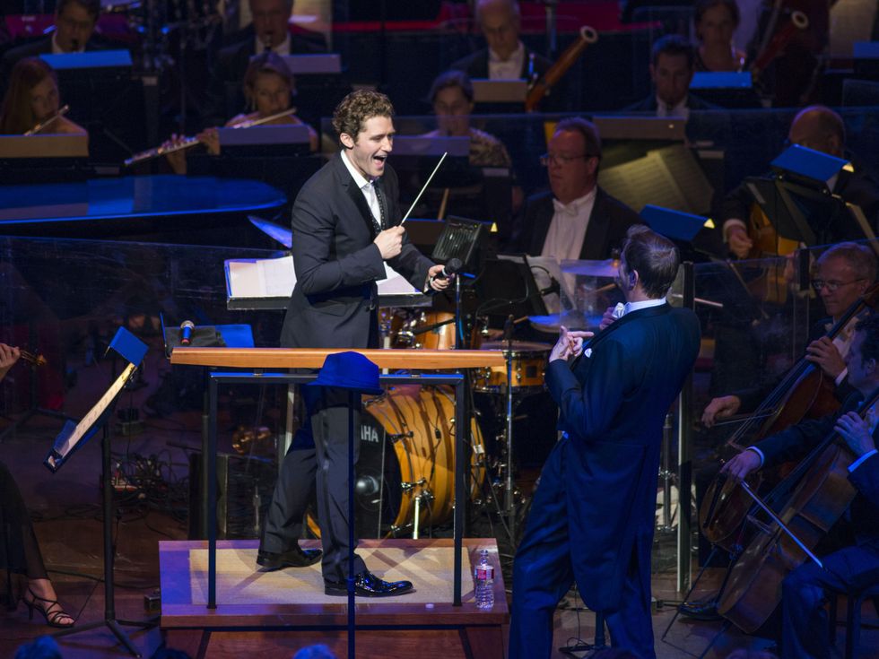 For this very special evening, Jones Hall seats were covered with temporary flooring to accommodate a supper club style setting that had most of the 600 guests seated at their dinner tables for the hour-long performance. Toes were tapping and shoulders swaying as Morrison sprinted through a collection of Broadway standards with the orchestra, which was under the spirited direction of guest conductor Steven Reineke.