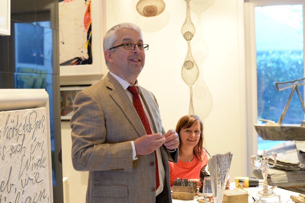 If anyone knows how to impress a gathering, it's Christofle Americas president and CEO Nicolas Krafft. Just ask the tony crowd of Christofle big spenders who were invited for a champagne and very-fancy-craft evening at the intriguing home of art collectors Lester Marks and Dr. Penelope Gonzales.