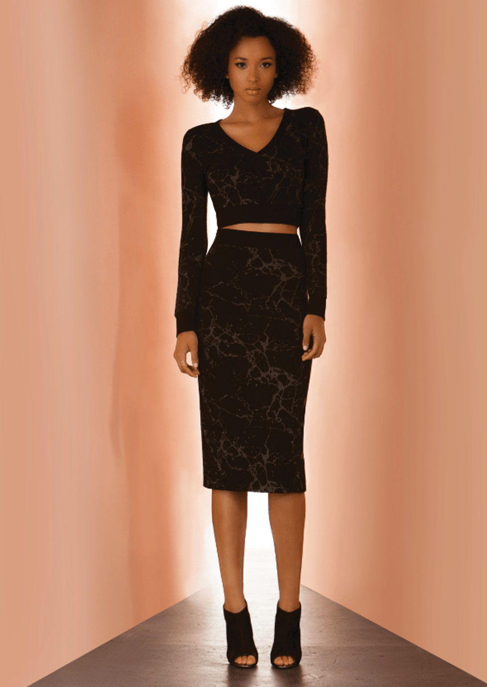 During the interview, Berman is wearing her newest favorite, the Sanibel, a full skirt and crop top from her fall collection. The skirt has a high waist that covers the midriff, so the wearer can showcase the crop top craze — a big trend for fall — without showing too much skin.