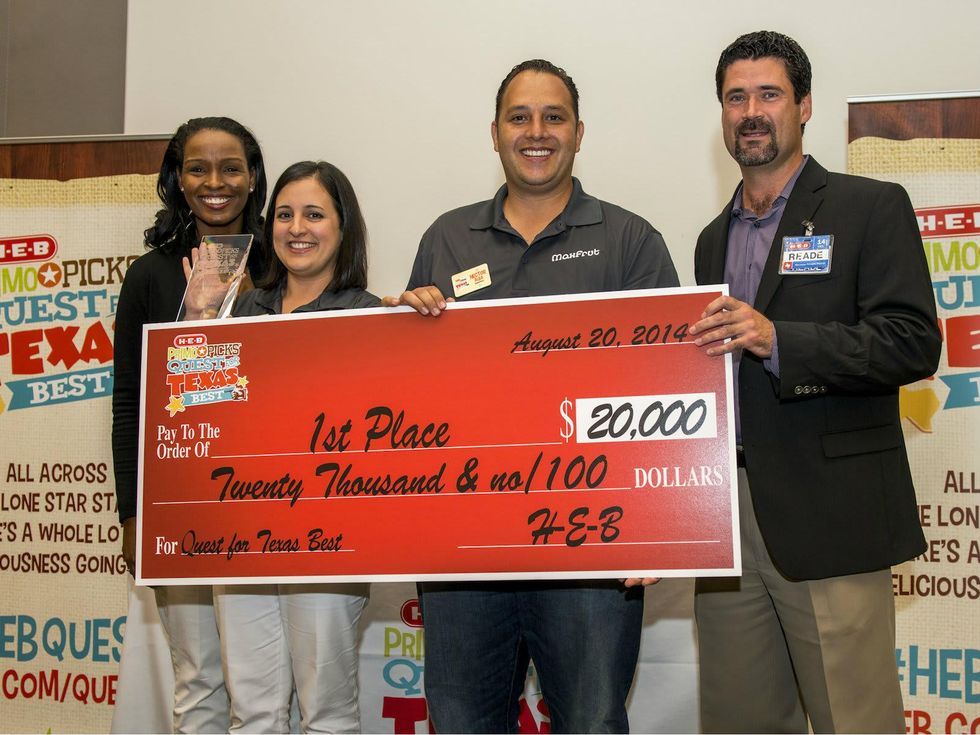 All natural, gluten-free, 70-calorie fruit bars by MaxFrut of Arlington took home the first runner-up prize and $20,000. A $15,000 second runner-up prize went to Habibi Gourmet's line of dips (cilantro, jalapeno, green olive) from Mission and the $10,000 third runner-up prize went to the sweet tea jam from Vela Farms in Victoria.