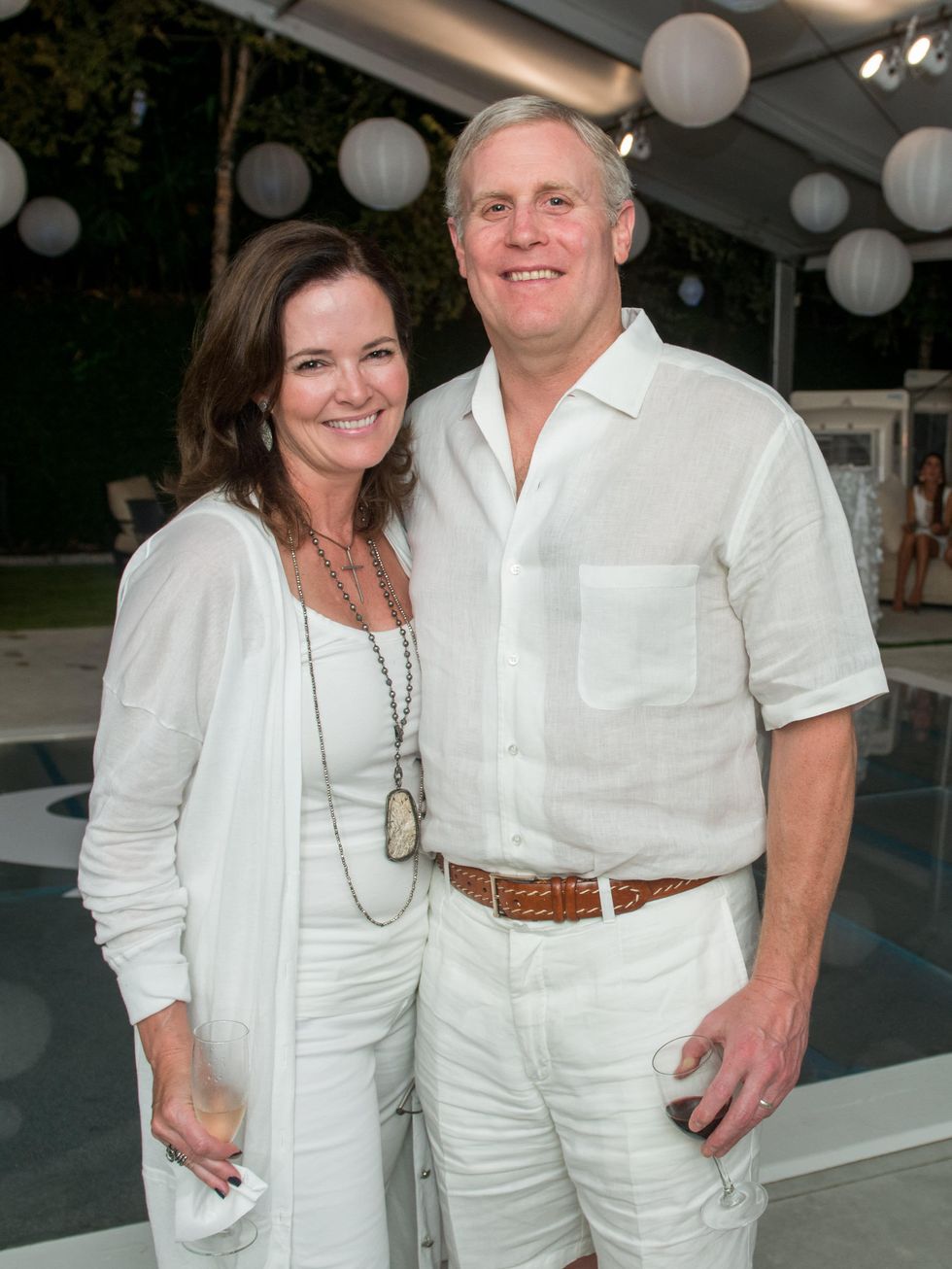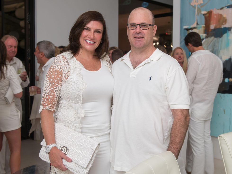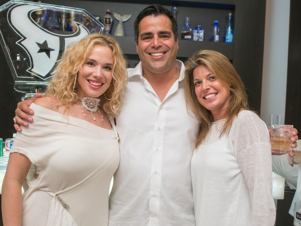 And we mean all white. Revelers dressed to the hilt in white, ranging from Lucinda's high fashion white lace togs by Alexis to party guests in white jeans and white Texans jerseys. The dashing Javier, minority owner of the Houston Texans, dressed in a white linen suit. The Loyas even had much of the furniture removed from their living room to import all white sofas and chairs for the evening.