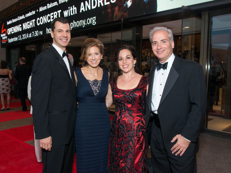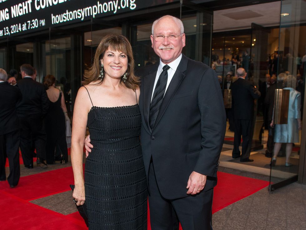The gala dinner, presented by the symphony society and symphony league, was chaired by Barbara and Pat McCelvey. Joining society president Bob Peiser on stage before the concert were Sharon Adams, representing the evening's honoree Houston First, and Ralph Burch, representing ConocoPhillips, concert sponsor and lead corporate underwriter for the gala.