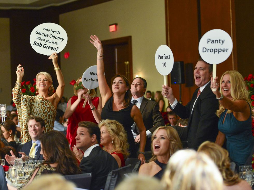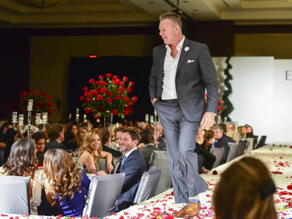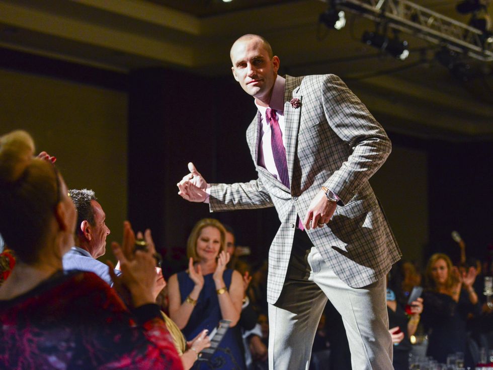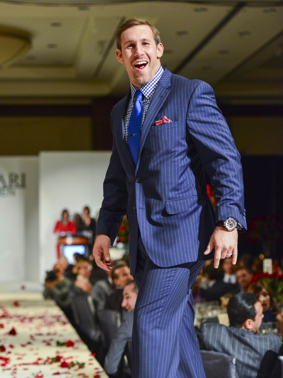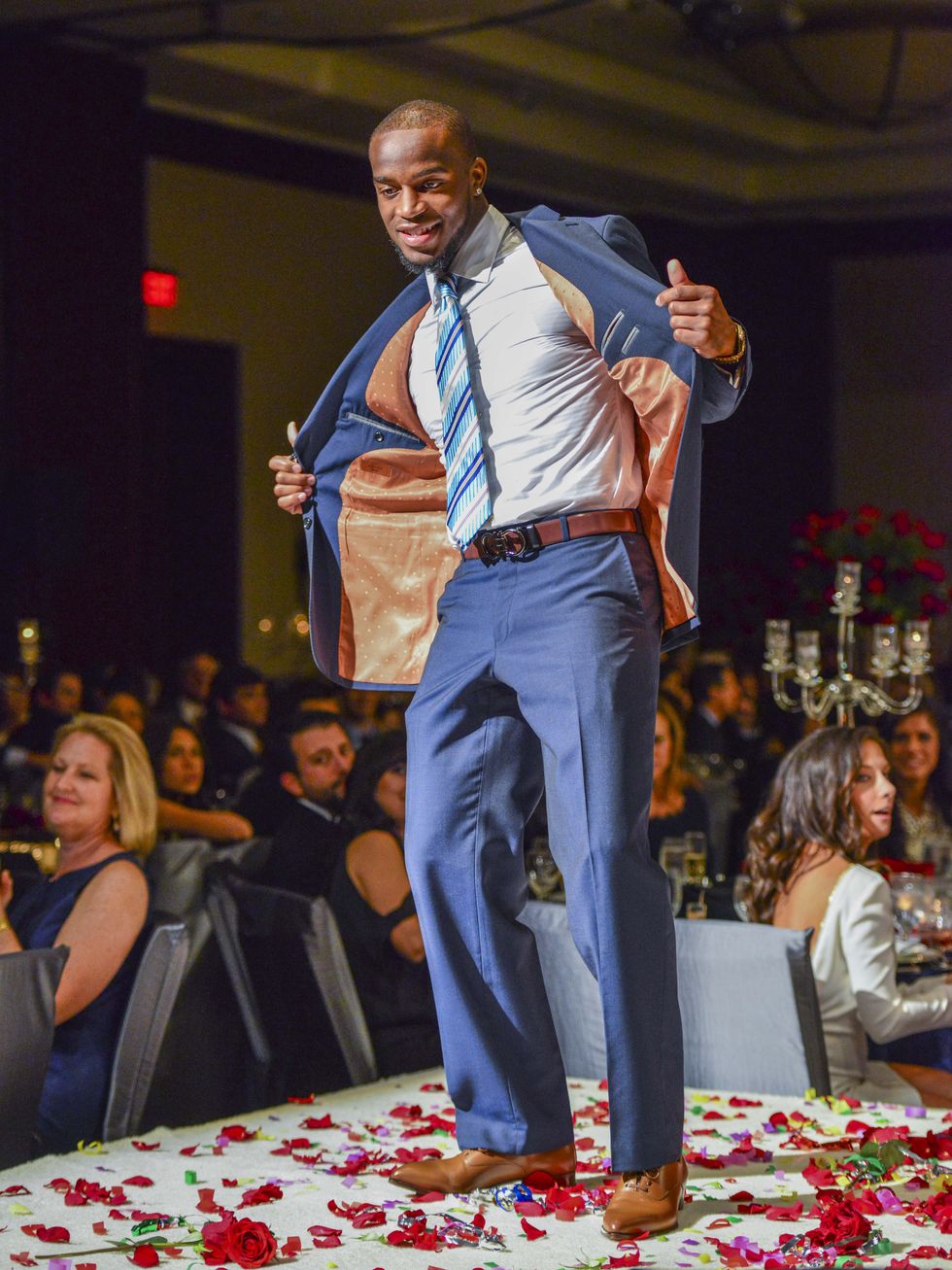 Houston Texans center Chris Myers reaches for a flying rose on the catwalk at Una Notte in Italia benefiting Bo's Place.