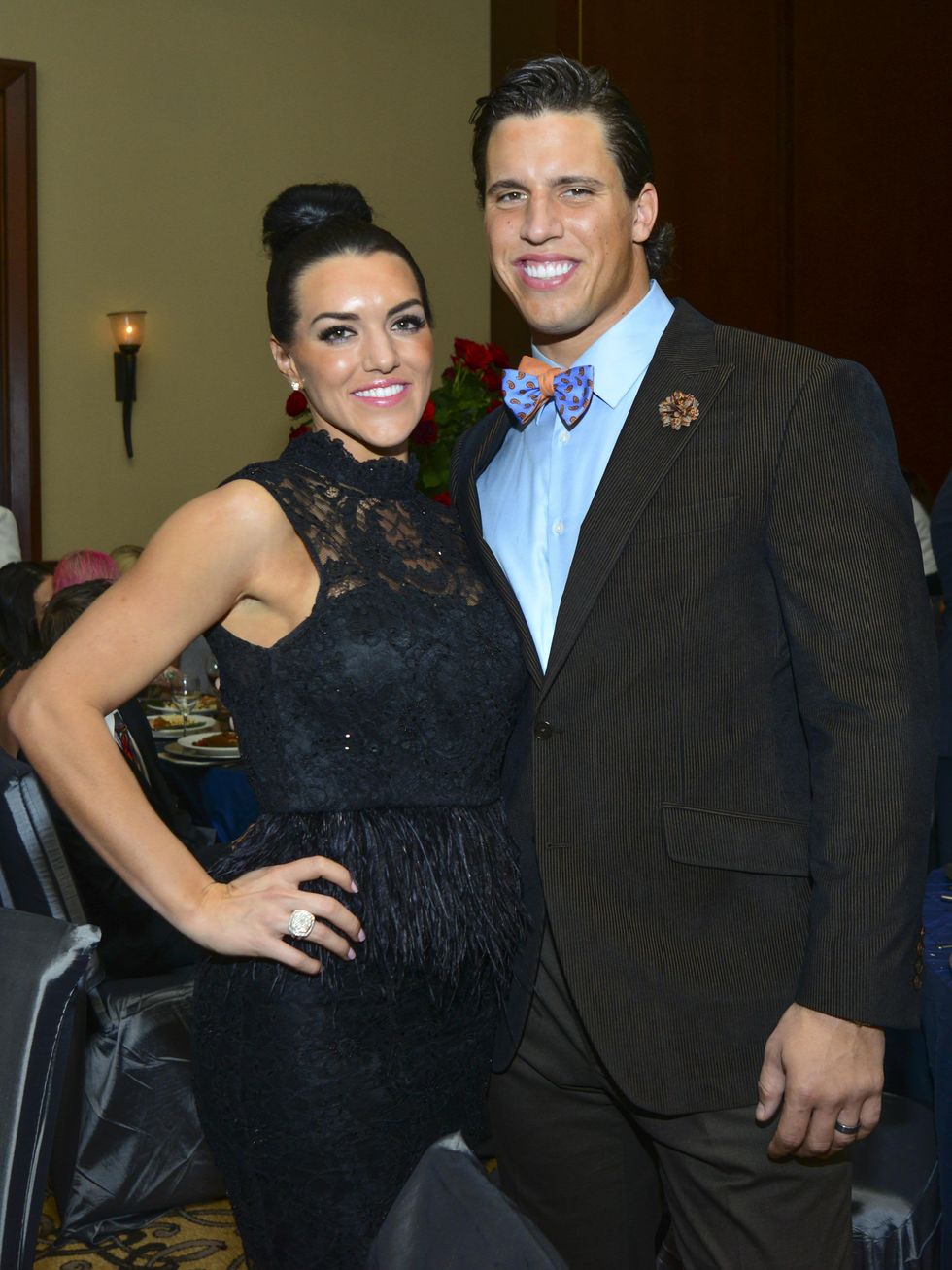 With play-off hopes faintly hanging in the air, these guys ruled over the SRO crowd of more than 600. The cheers, the hoots, the hollers, the tossed roses and blasting confetti guns greeted each of the Houston Texans and for quarterback Schaub it was a rocking standing ovation. There were plenty of cheers as well for Brian Cushing, who due to his knee injury had to cancel his runway moment but made the party with his wife, Megan.
