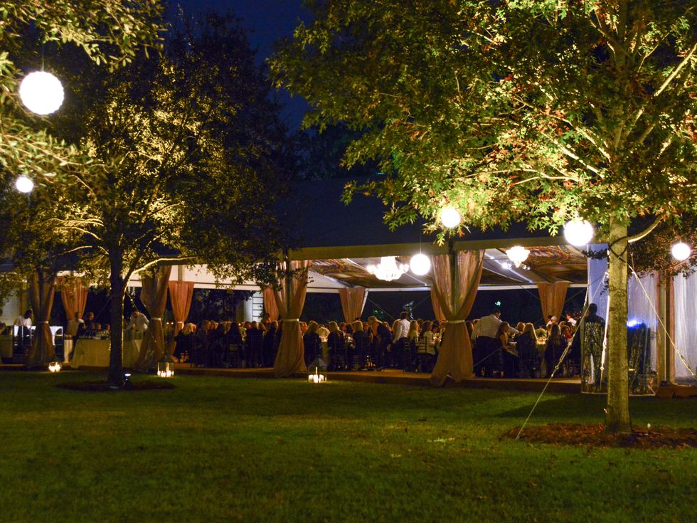 In keeping with the theme, the traditional trivia/scavenger competition took place in the Havens' Louis XV-inspired mansion (many architectural details originated in France), thus a generous number of French-themed questions. Dinner seating was in a party tent richly dressed by Bergner & Johnson's Rebekah Johnson to resemble a chateau. The tented ceiling was lined with panels of renderings of French architectural ceilings and hung with dazzling crystal chandeliers. Peonies, hydrangeas and roses provided explosions of color.