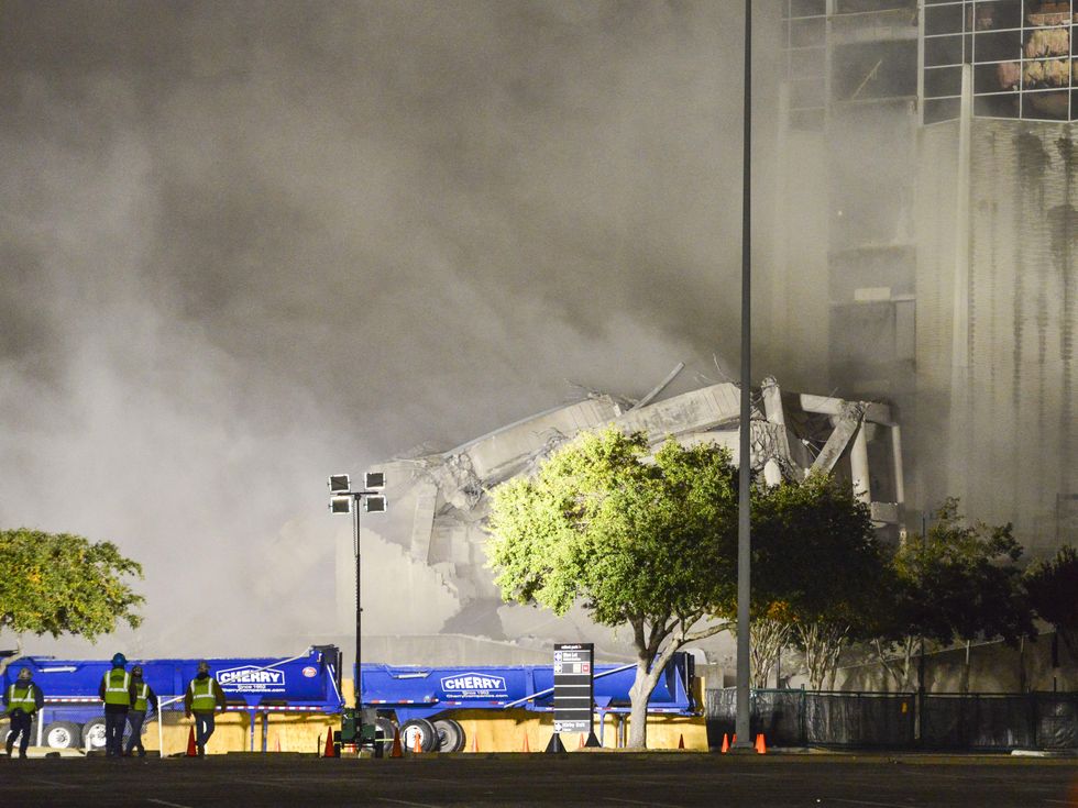 During the demolition, which went off without a hitch around 9:30 p.m., the Texas Department of Transportation halted traffic on both eastbound and westbound lanes of the South Loop as a precaution.