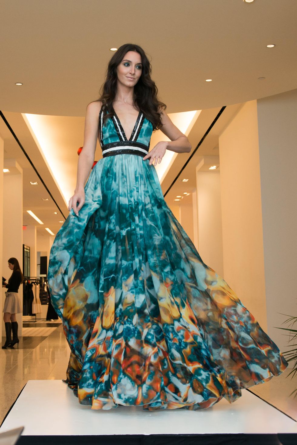 Saab is a favorite of red-carpet celebrities and the beautiful designs tempted the Houston ladies, though the peek-a-boo lace ensembles with the models' thongs and cheeks exposed caused a few riffles in the well-heeled crowd. No worries for the modest among the fashionistas. Tootsies' Fady Armanious assured the ladies that the dresses can easily be lined. The bare look was primarily a runway confection.