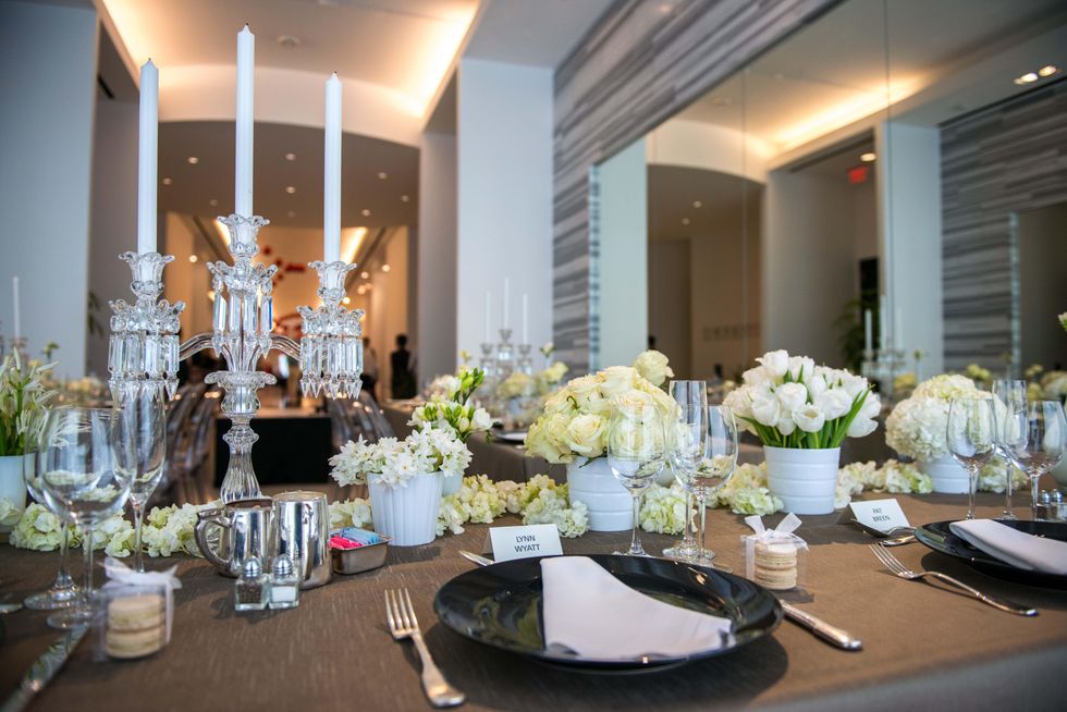 City Kitchen provided the ladylike fare in the store's bright, mirrored dining salon while The Events Co. created an elegant setting with white flowers, white linens and crystal candelabra.