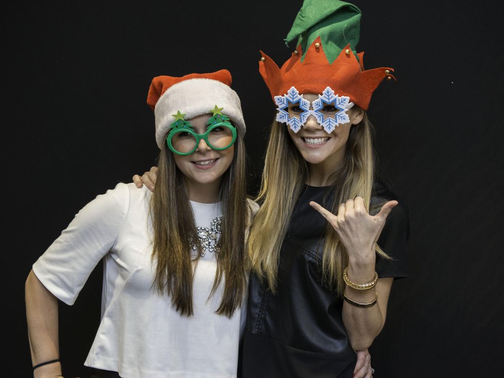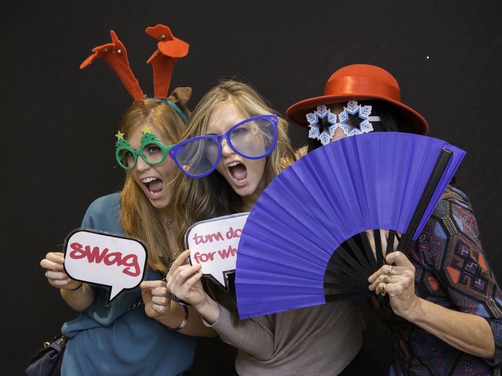 The photo booth holiday props provided a merry moment for Amber Hartland, from left, Rebekah Hartland and Joan Hartland at IW Marks Wish List party.