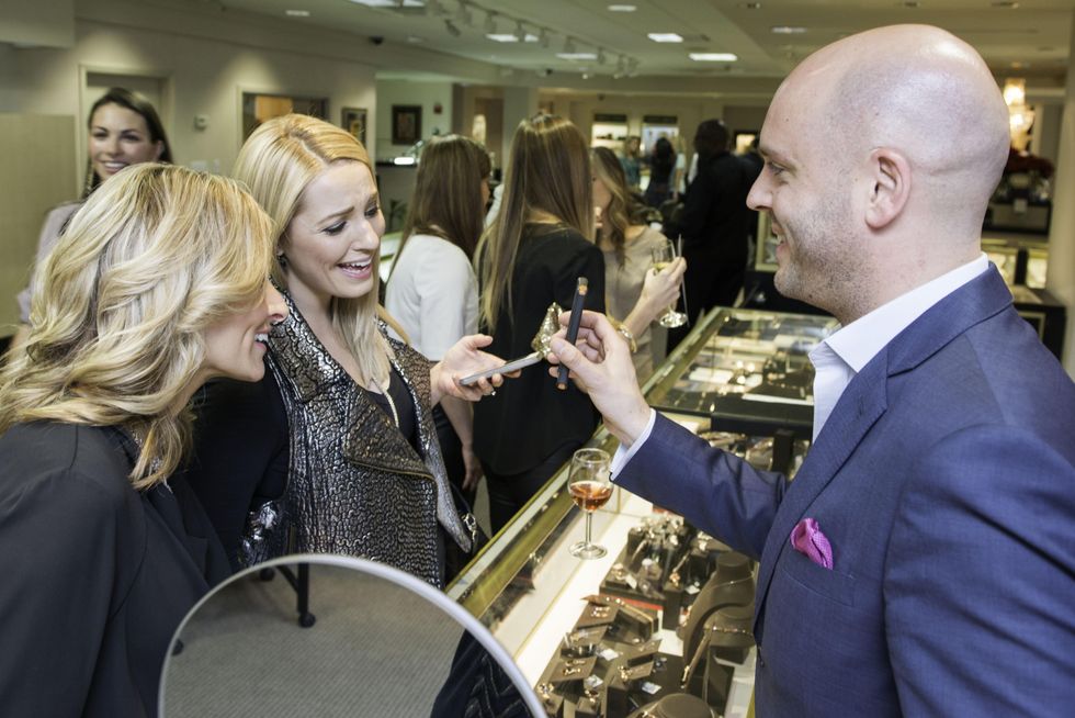 Amid a frothy holiday-style celebration, the ladies were invited to survey the sparklies and make a wish list of their favorite baubles and bling. The "I've gotta have this" notes are kept on file at the jewelry emporium for the ladies' significant others to ease the challenge of finding just the right gift. Tempting pieces were found not only in the vitrines but also in the trunk shows provided by Ugo Cala, Visconti, Midas Diamonds and Suzanne Kalan.