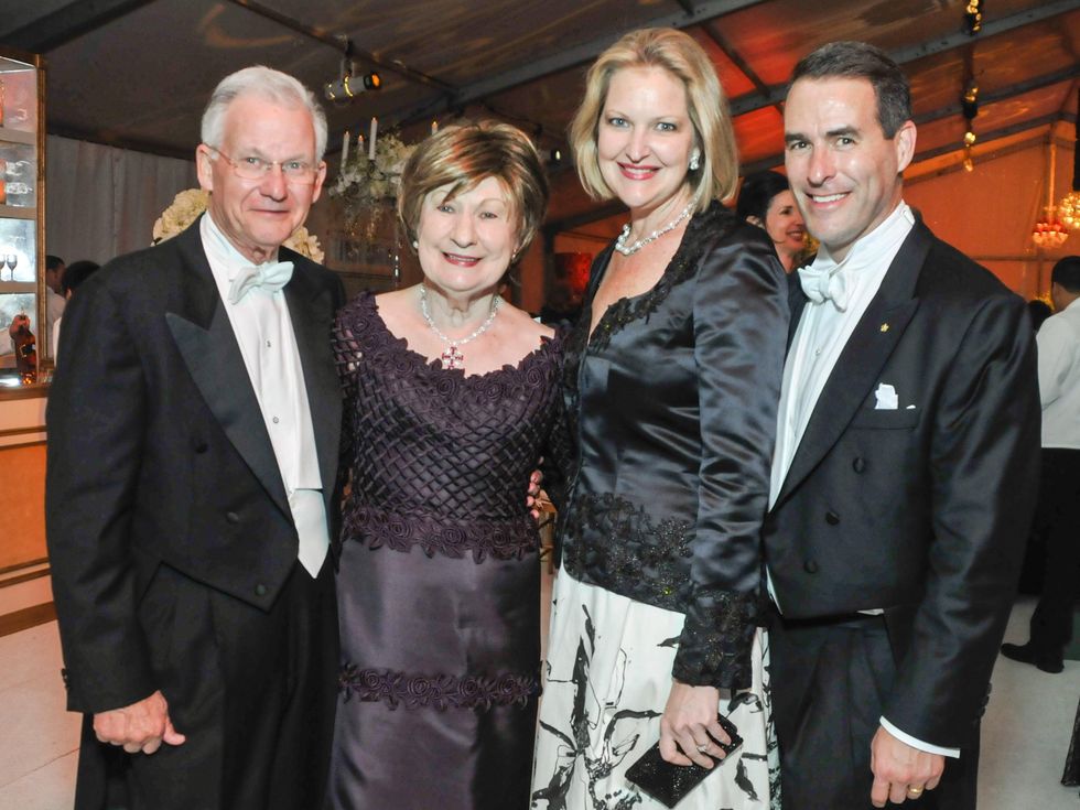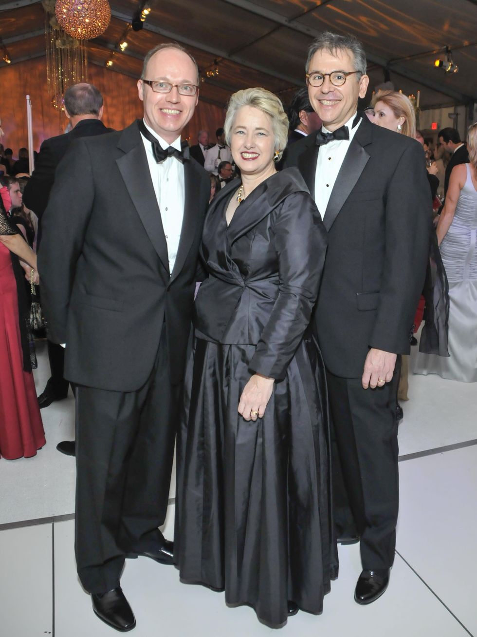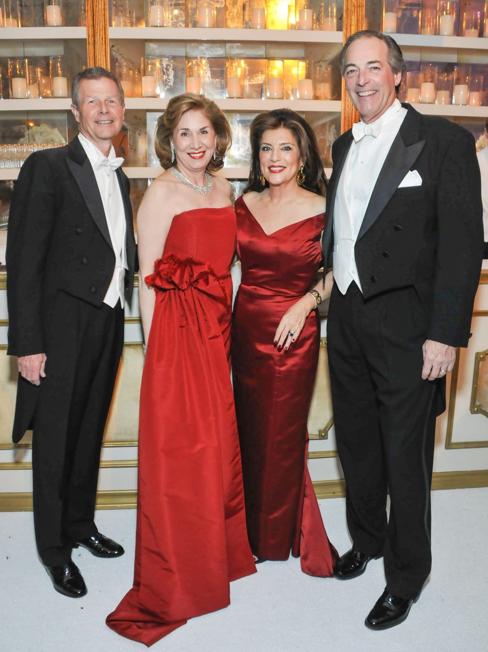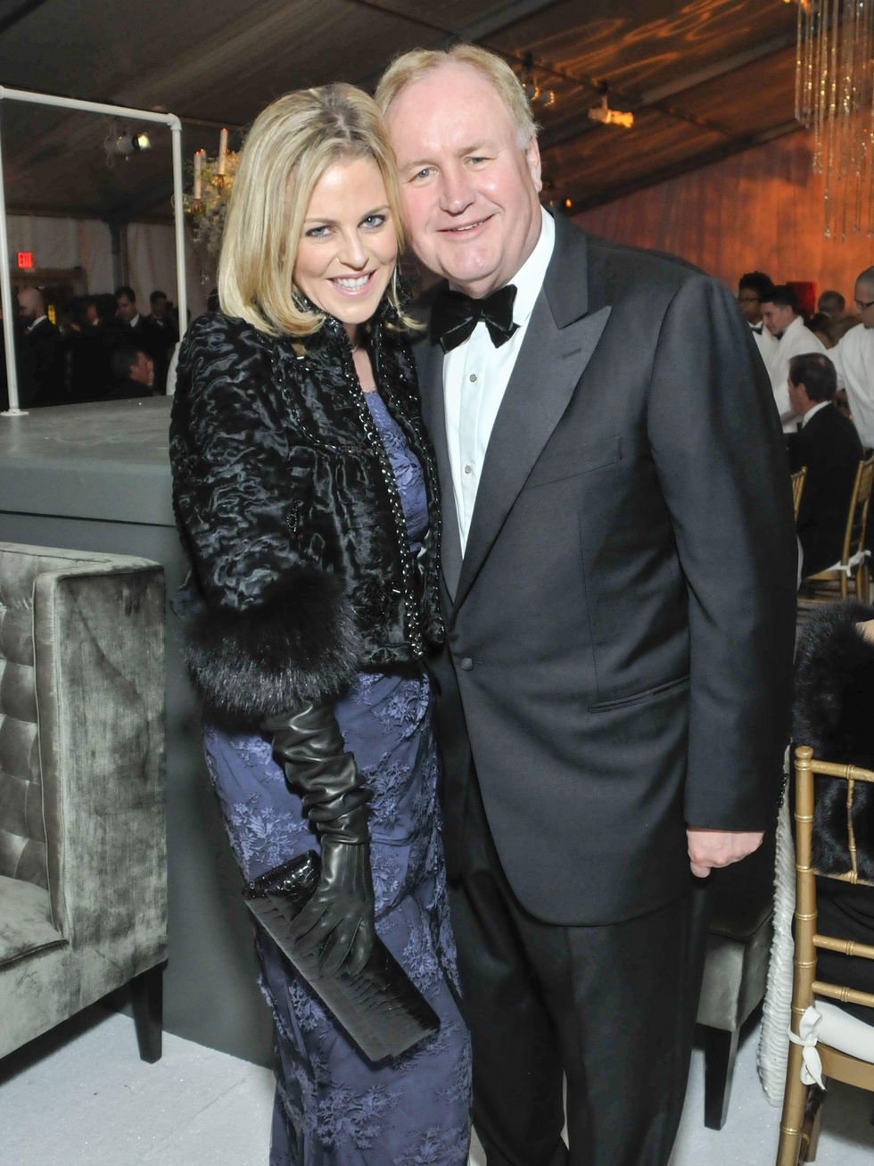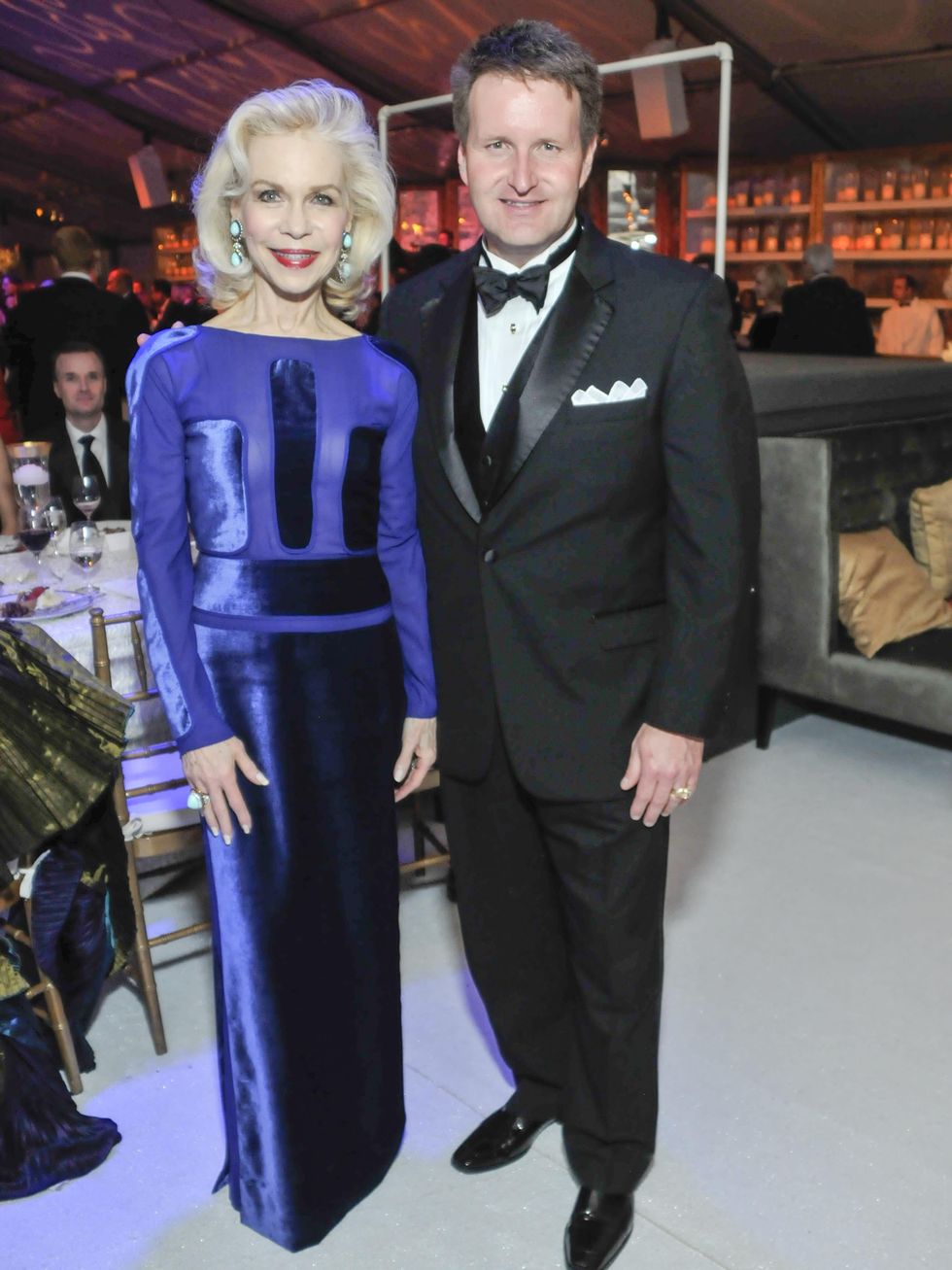 The tableau practically outshone the guests and the ladies who were stunning in their designer gowns. Phoebe Tudor dazzled in a beaded J. Mendel, Denise Bush Bahr wowed in red Oscar de la Renta and Elizabeth Petersen magnificently channeled a czarina — Andrew Gn jacket in velvet, fur and jet beading worn over a navy lace gown by Monique Lhuillier with black, elbow-length Bottega Veneta gloves.