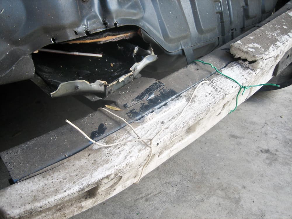 A nice man helped me grab some wire and use it to hold the styrofoam to thebumper frame.Photo by Sarah Rufca