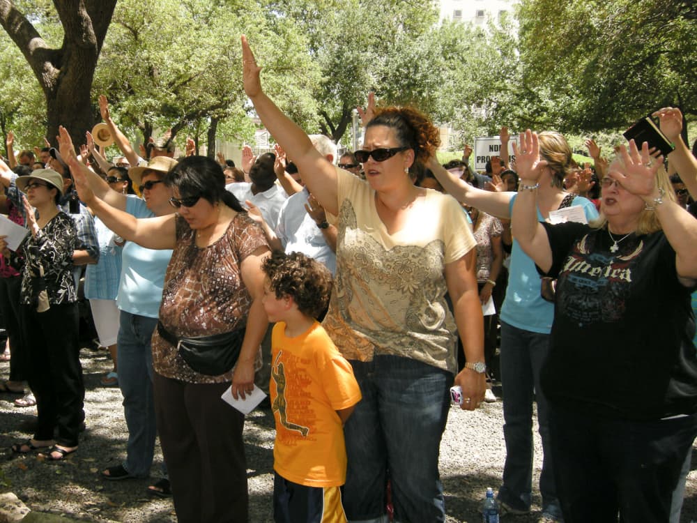 For some, today represents a hungover Seis de Mayo, but for the not-so-lost souls, it's National Day of Prayer. Hundreds of devout individuals gathered this afternoon on the steps of City Hall for a two-hour long ceremony of prayer, song and remarks by Governor Rick Perry.