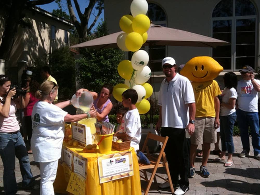 Jeff Bagwell (in hat, not lemonade head) takes in the Lemonade Day scene atDiscovery Green.