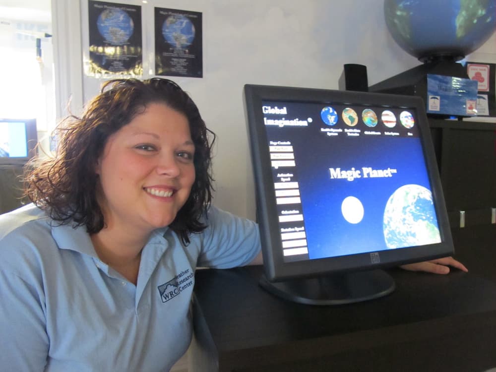 Maureen Maiuri, executive director and meteorologist, in her favorite room inthe Weather Museum: The Weather SpherePhoto by Katie Oxford