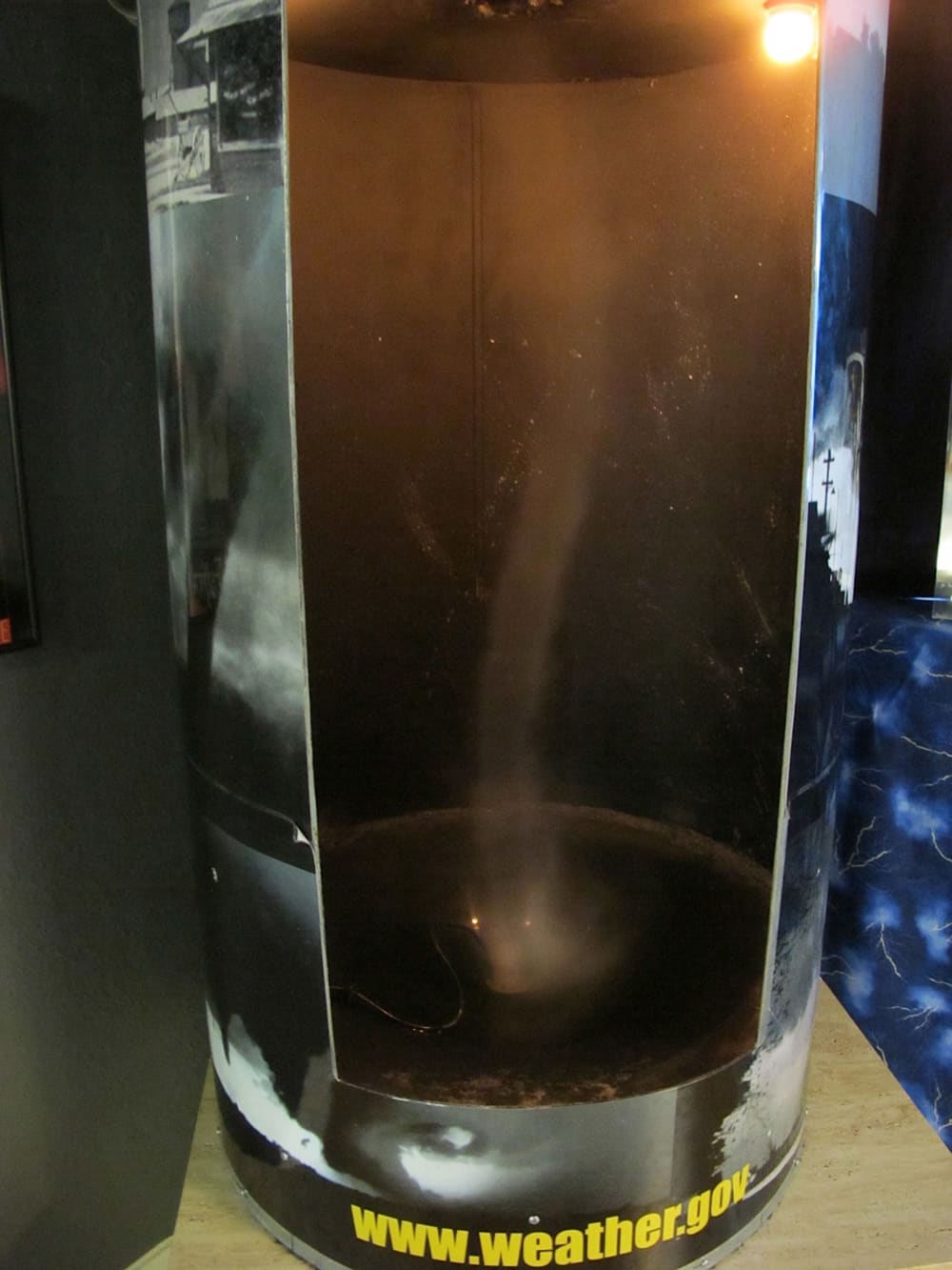 Of course some of this information you can get off of the Internet but it’s not anything like being there — inside this interactive weather museum — touching a tornado created in water vapor, giving a weather forecast, viewing classic tornado and hurricane footage.