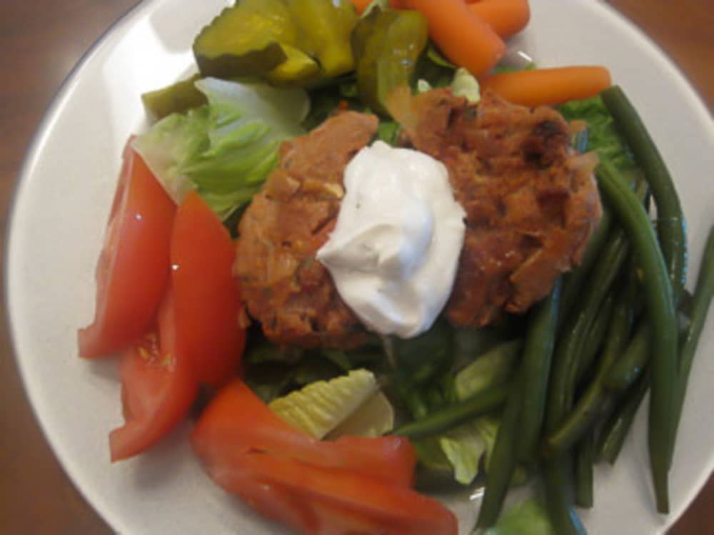 Mix protein and carbs: Turkey burger with tomatoes, green beans and a dollop ofyogurt.Photo by Marci Gilbert