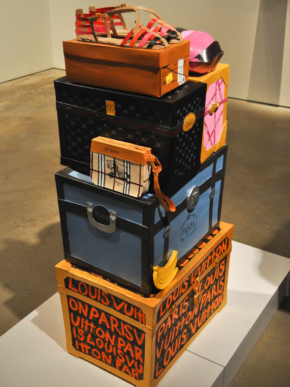A whimsical "designer" collection of travel trunks, bags and sandals is focalpoint in Peel Gallery.Photo by Shelby Hodge