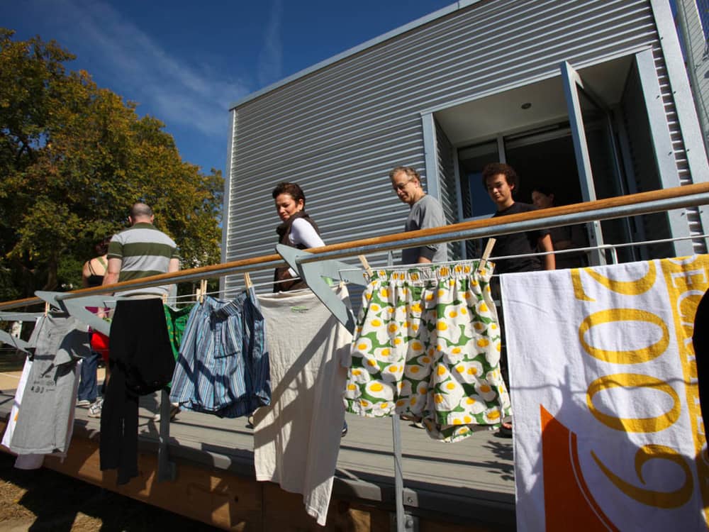 Students at Rice University save energy by drying their laundry in the sun.Stefano Paltera/US Dept. of Energy Solar Decathlon