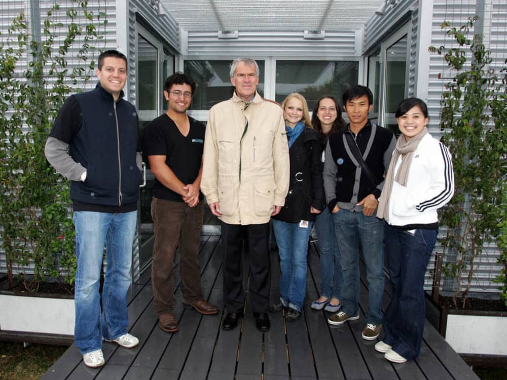 Senator Jeff Bingaman (D-NM), center, poses for a photo with Rice Universitystudents in front of their solar-powered house.Stefano Paltera/US Dept. of Energy Solar Decathlon