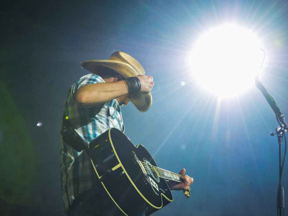 Step Twelve (applies exclusively to Jason Aldean): You're totally in control. Own that stage. Strut around, pump your fist, be yourself. Adapt lyrics to make the citizens of the city you're playing in feel special (I.E. sing ..."girls of Houston,Texas..", "...tattoos on this Texas town...", etc.)