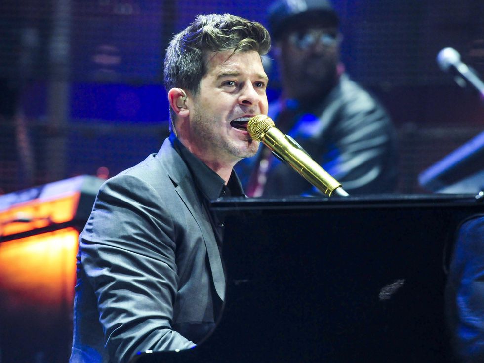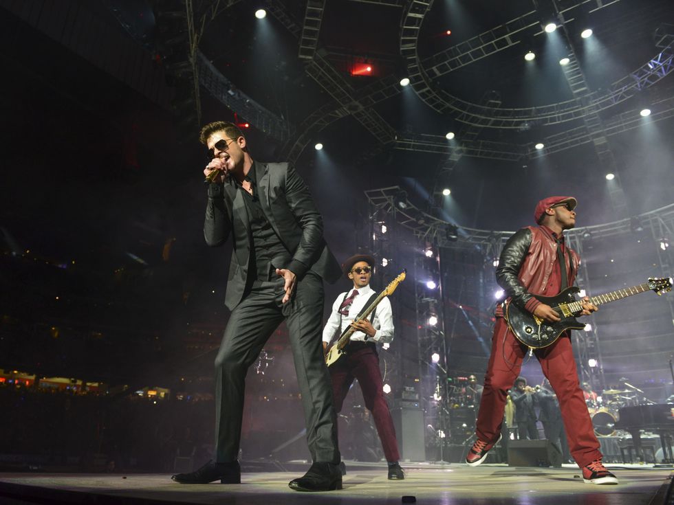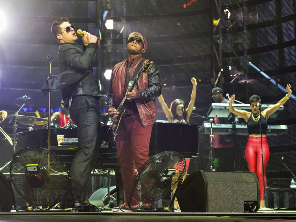 Suave and sexy Robin Thicke gets a workout in his first Rodeo performance