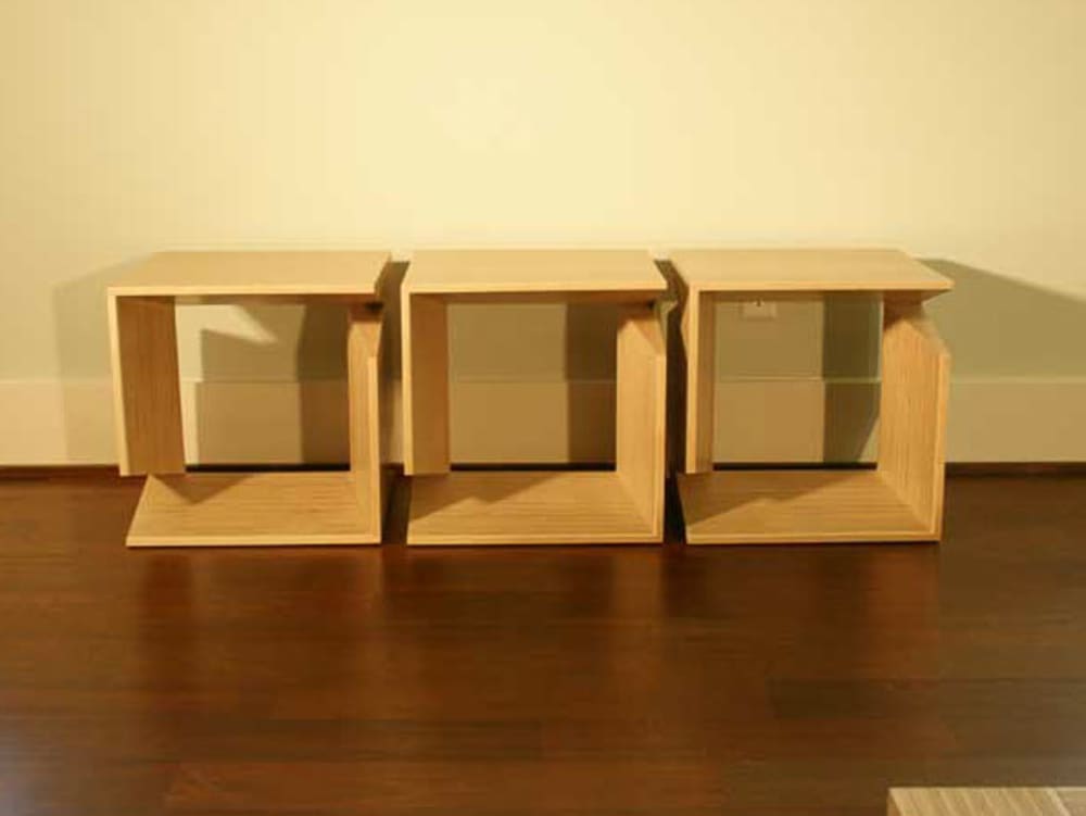 But Garman has a relaxed demeanor that's more indicative of a contemplative craftsman than a calculating design scene climber. "I also work in construction," he says, "and in the aftermath of the recent hurricanes, I observed the hordes of scraps everywhere. Even though what I do is nicer than just using scraps, I want to show how you can take plywood and make it something beautiful."