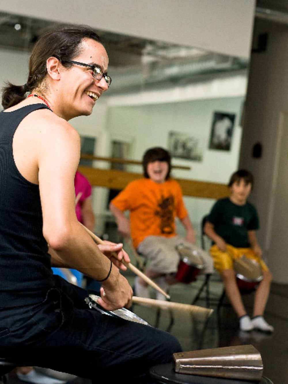 Chris Howard, music teacher for the Kid's Play/Youth Sound Ensemble, smiles atthe young artists.Photo by Anthony Rathbun