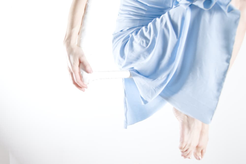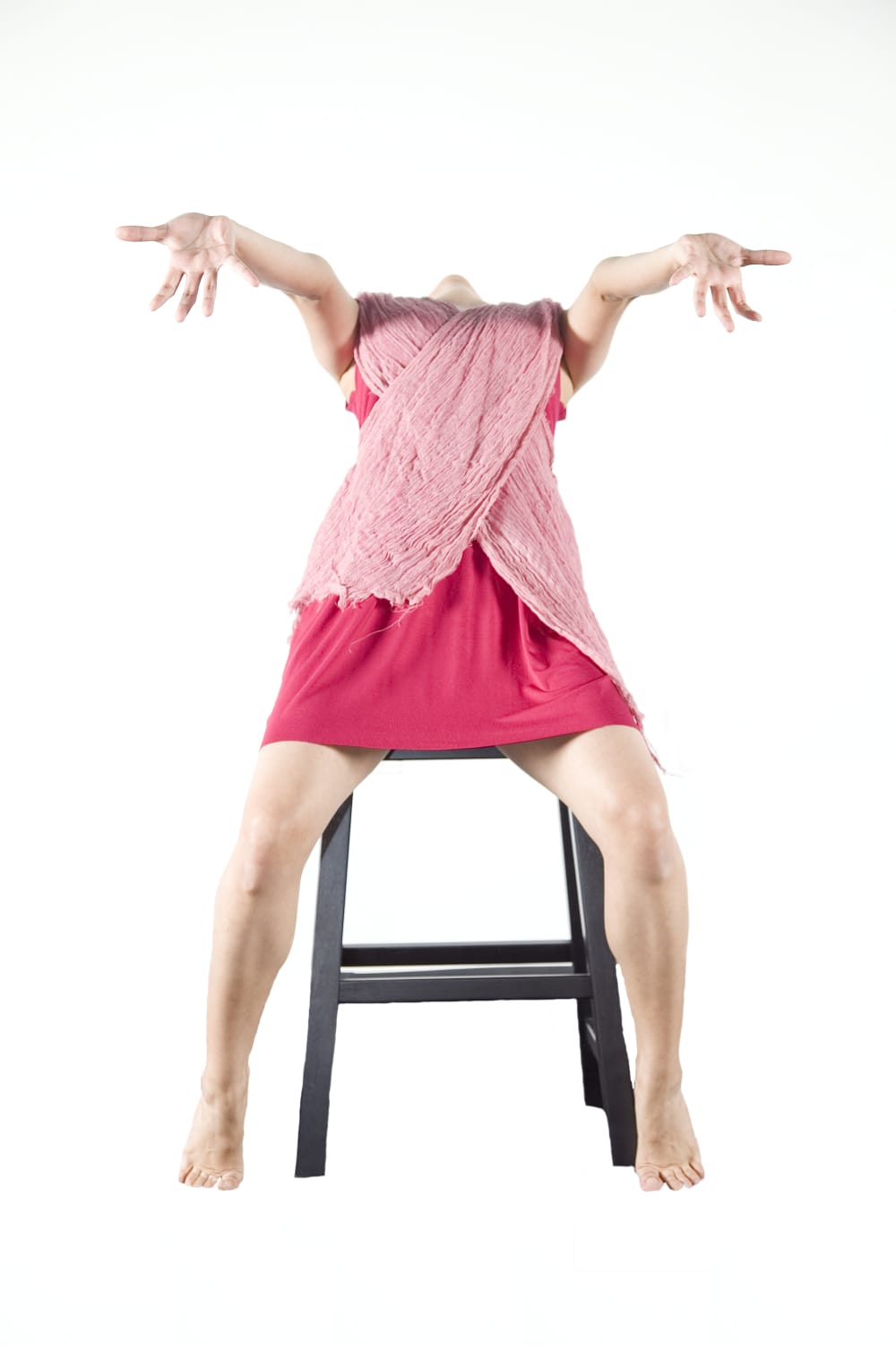 "Blau" is German for blue, and refers to both the layers of self and stage spaces she uses during the piece. "Think of the human onion, you peel off one layer and there's another one," she says. Ell likes to adapt her many aerial skills to the space. Although DiverseWorks' ceiling is too low to use silks, it's perfect for for trapeze. Ell is single and a single mom of a teen ballet dancer.