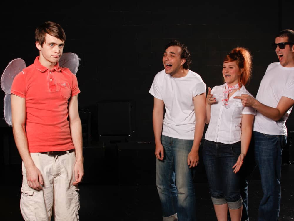 A scene from "Kelly, King of the Fairies: The Fairy Who Wished He Wasn't," withShane Dorman (Kelly), from left, Adam Sowers (George), Traci Thiebaud (Susan)and Ben Mattice (Mikey). Catch the play at 5 p.m. on Saturday and Sunday at TheHouston Metropolitan Dance Center.Photo by Mike Dorman