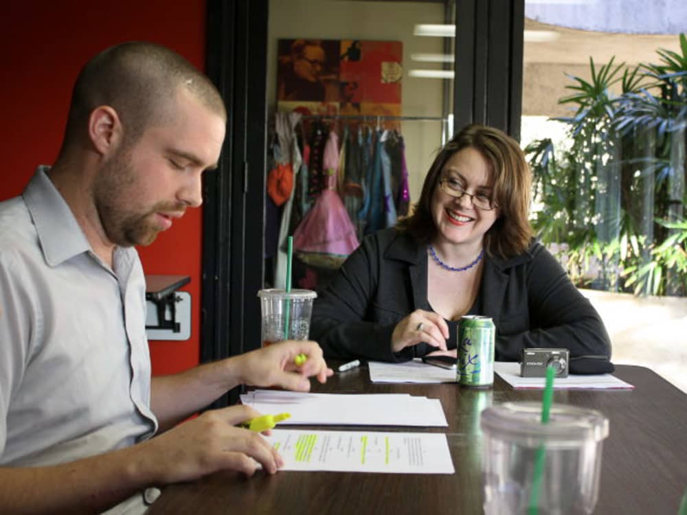 A rehearsal with actor Andrew Love and playwright Crystal Jackson of Six of OneProductions. SOOP is presenting two pieces at the festival: "Bring Your Jesus toClass Day" by Abby Koenig and "Flagellating the Boss" by Crystal Jackson, bothwhich can be seen Friday, Saturday and Sunday at 9 p.m. at Avant Garden.Photo by Dennis Draper