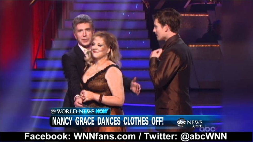 Nancy Grace tries to cover up her DWTS wardrobe malfunction, but this nipple'sout of the bag