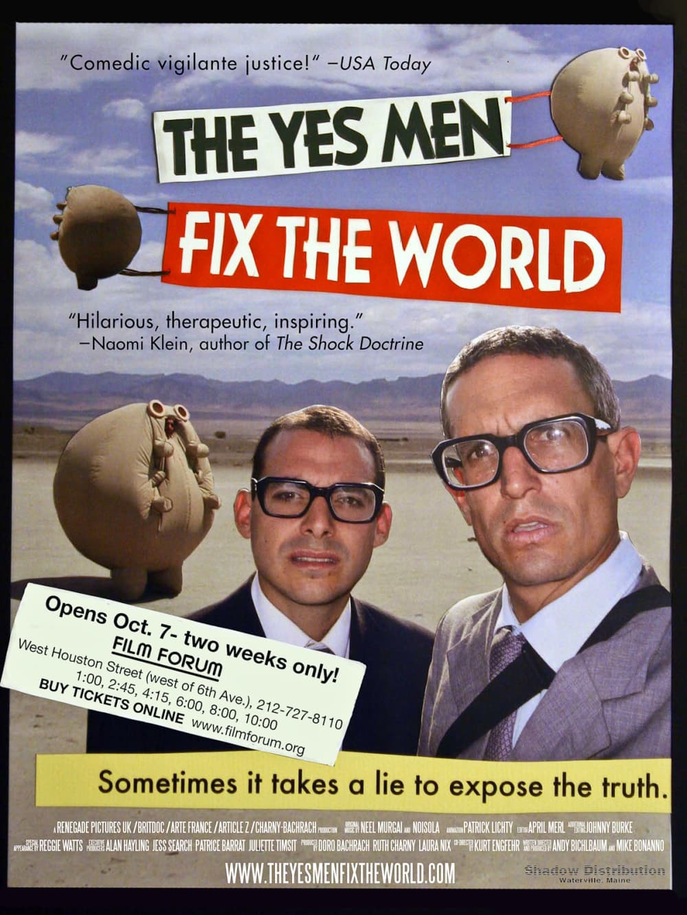 The Yes Men Fix the World will also be shown Sunday 1 p.m. at Angelika Film Center. Andy Bichlbaum will be in attendance.