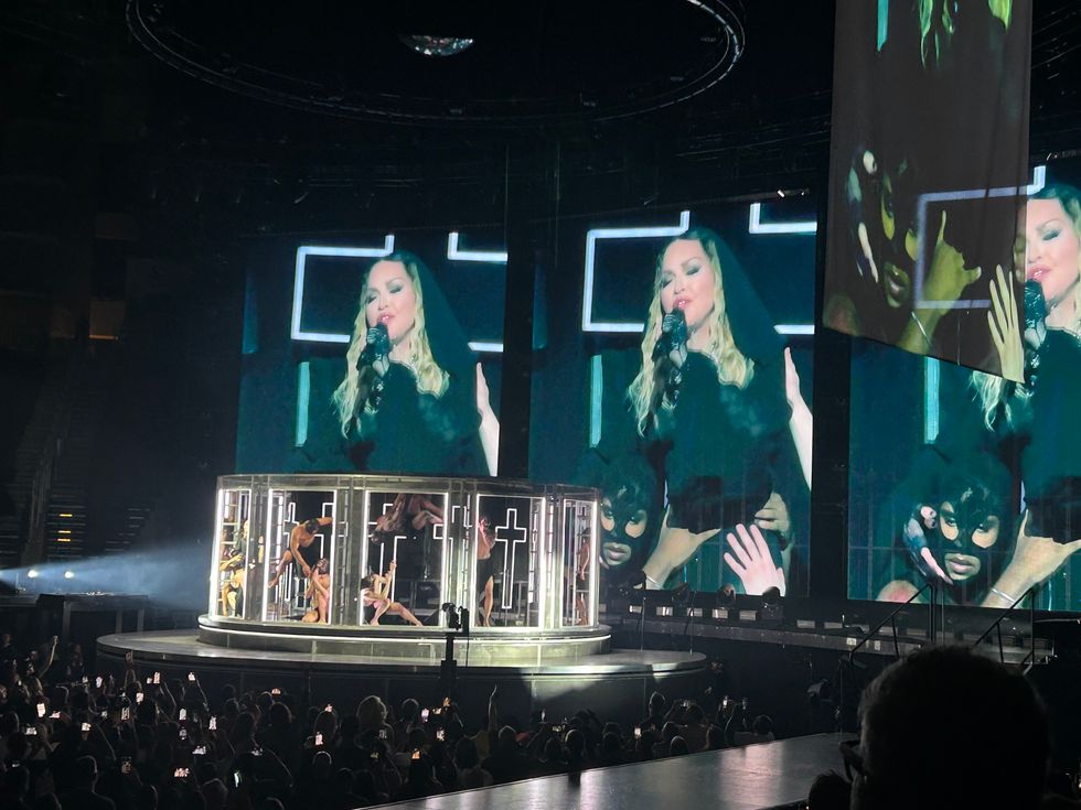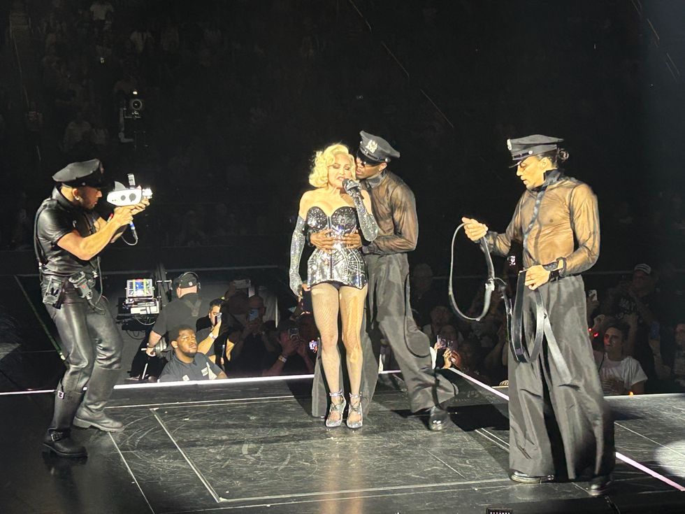 Act II highlights included the stone-cold classic jam, “Like A Prayer,” with more religious iconography: nuns, a carousel of crosses and bare-chested, six-packed men in cages, snippets of Gregorian chanting and Sam Smith’s “Unholy.” Very Madonna and oh so good.