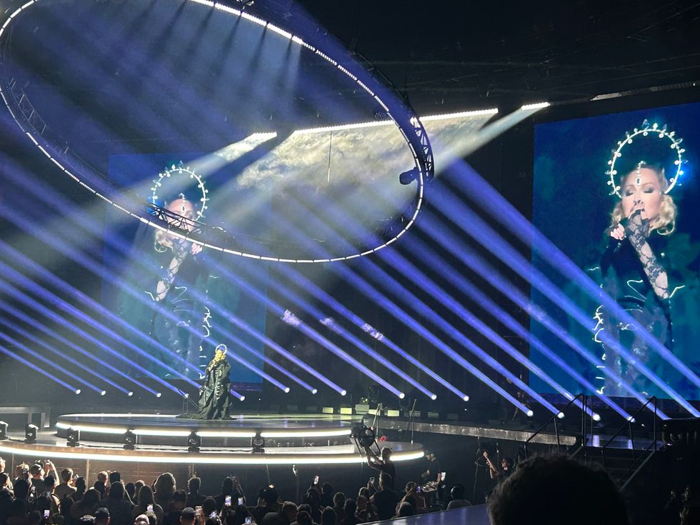 As a hero to the LGBTQIA+ movement, there were plenty of same sex partners in the audience, but there were numerous other fans she had gathered along the way, done up in their favorite Madonna outfits. They were treated to high-tech, eye-popping set pieces with a stage that worked its way across the arena floor to make the proceedings feel more intimate.