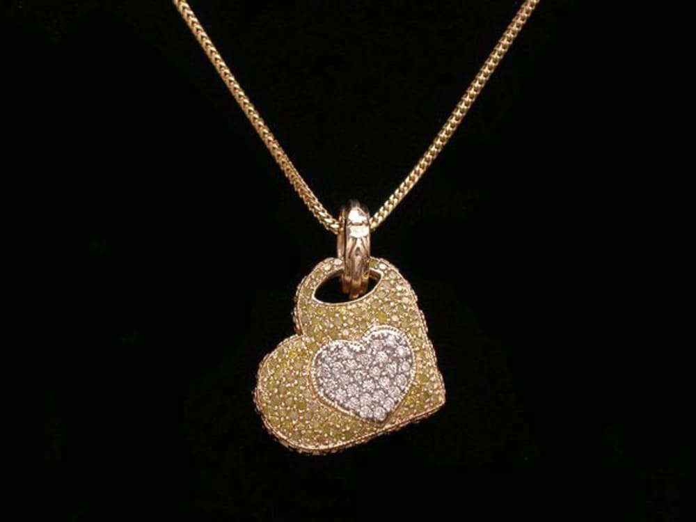Adamo Heart in 14-karat yellow gold with diamonds at Sloan/Hall; brothers Demianand Alex Vazquez will show their bejeweled baubles at a trunk show Friday night