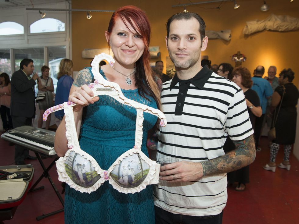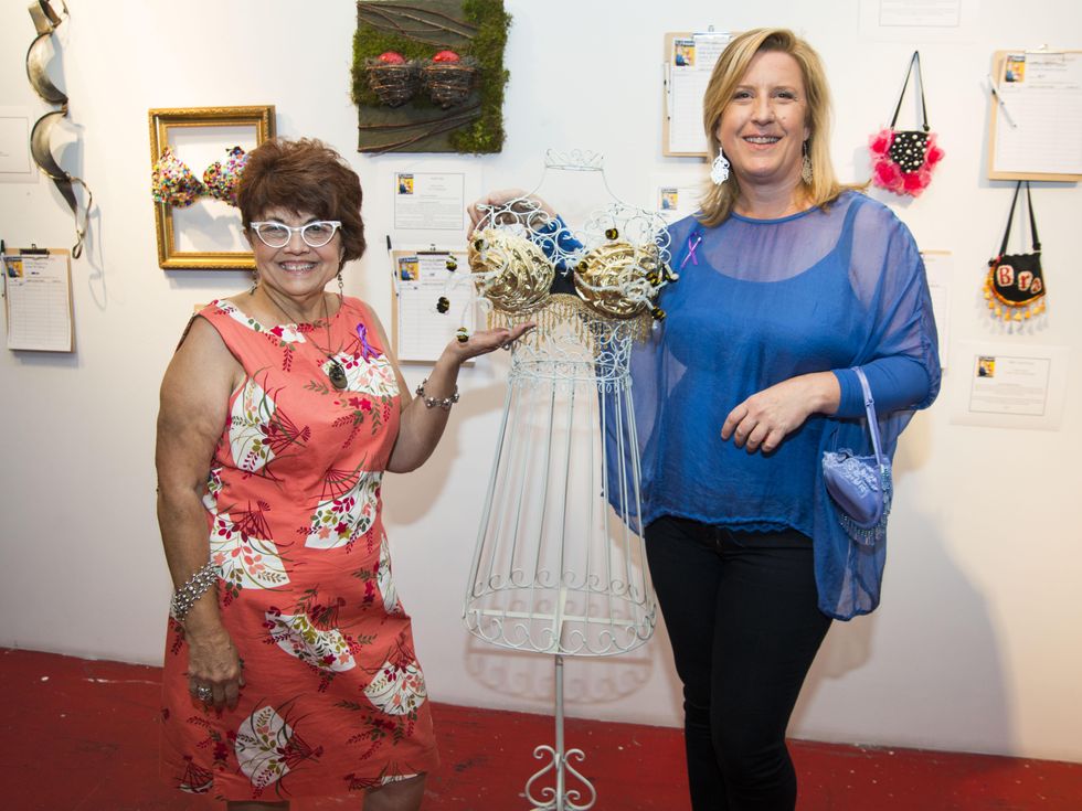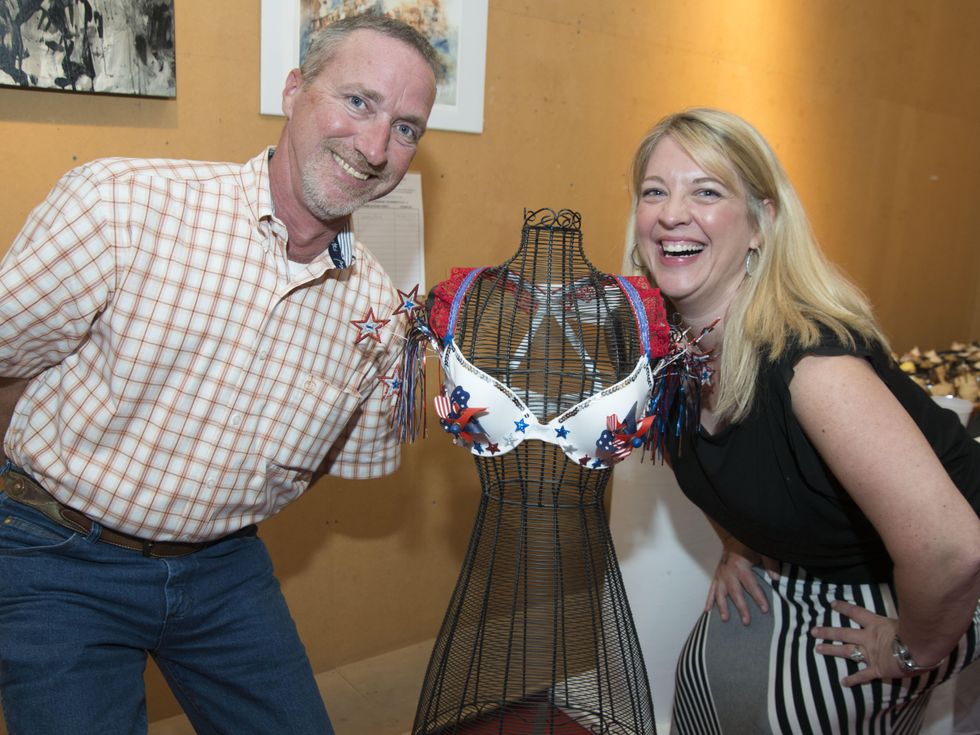 Saturday night marked the event's third anniversary at G Gallery in the Heights, where 29 local artists had donated musings on the brassiere— some serious, some quite whimsical — accompanied by placards offering the back story of each item up for grabs. The fundraiser, titled "The Brazarre Fights Back," benefited American Cancer Society's Relay For Life Greater Heights.