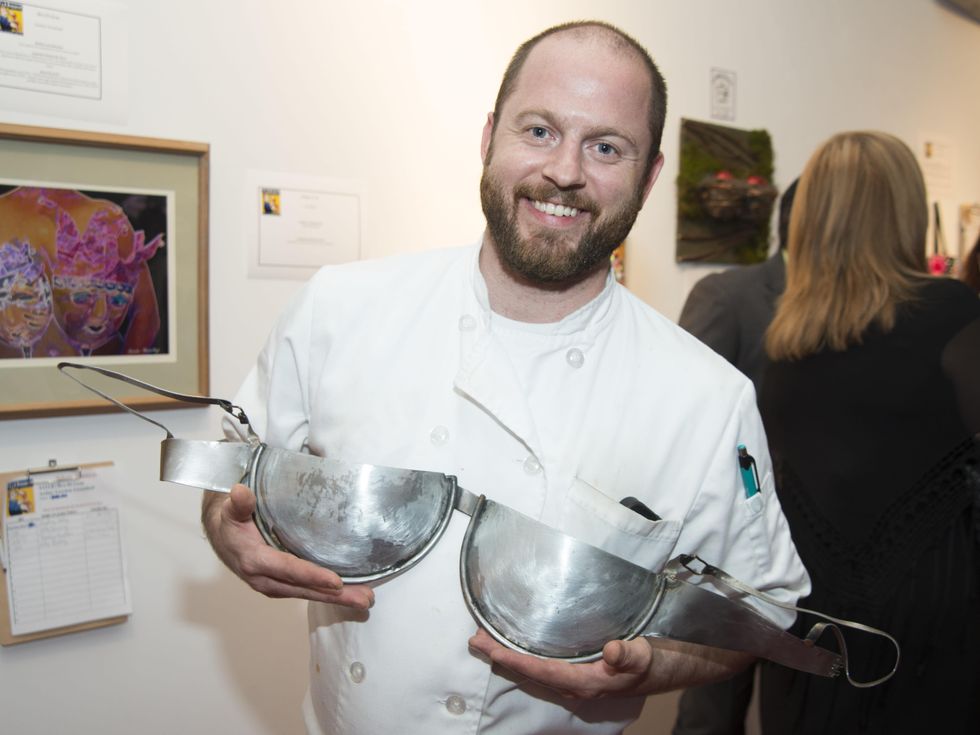 Take Sharon Grammatico's design, a remote controlled light fixture crafted from two glowing, pink baseball gloves. The sconce paid respects to many members of her family and close friends whose lives were affected by the disease, including artist Sam Van Bibber. You couldn't walk by Eve Maulsby's "Boobs-Bees: The Land of Milk and Honey" without giggling at the witty play on words, which mused on the commonalities between women and bees as the providers of nourishment.