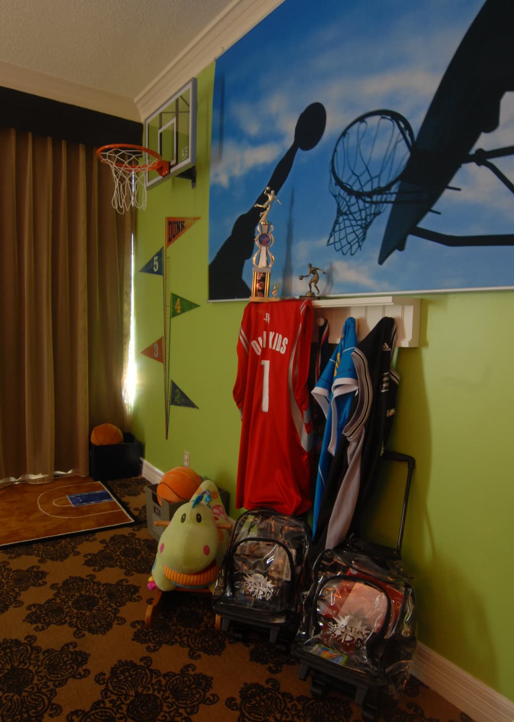 The sports corner scores with young guests.