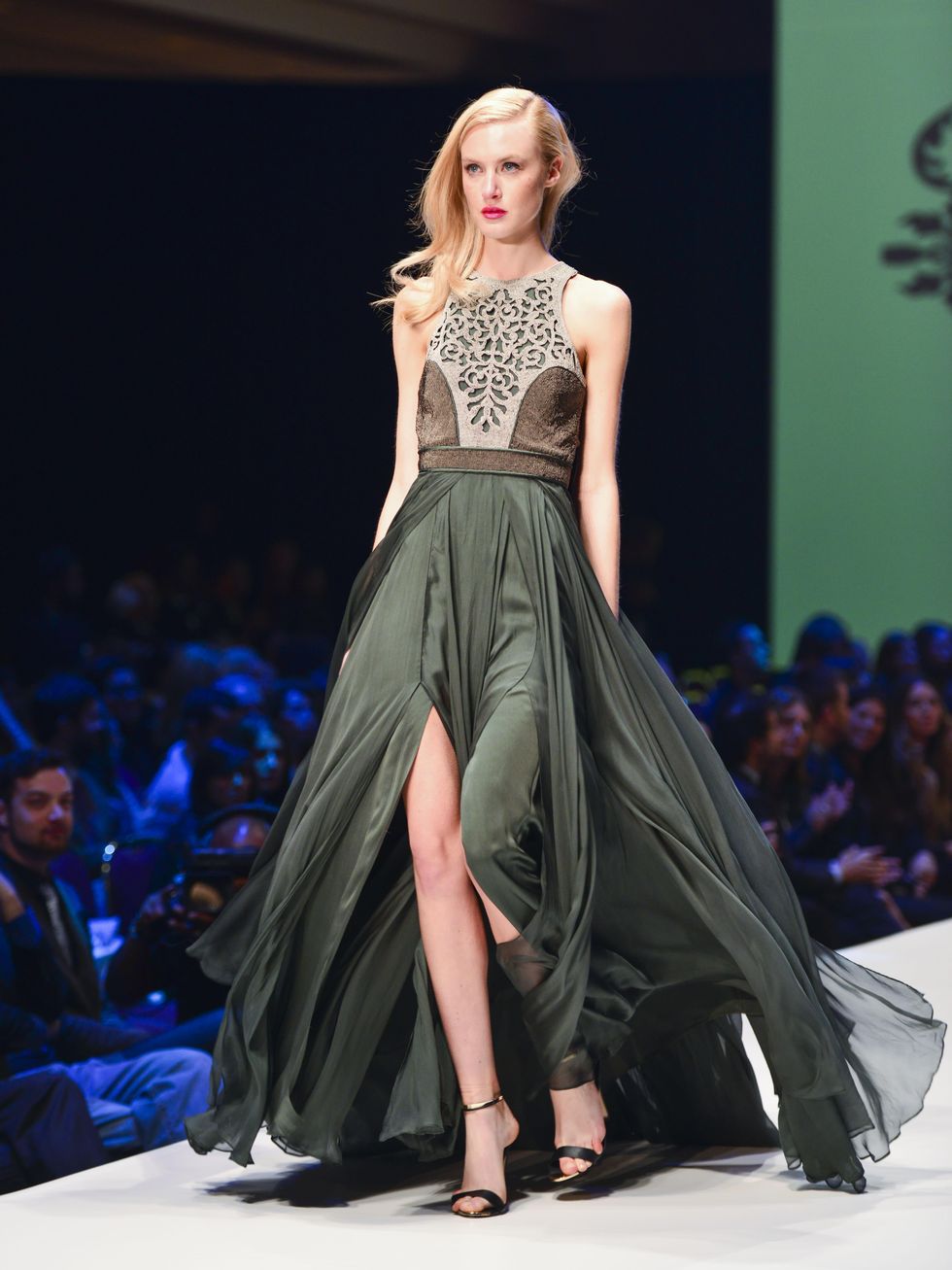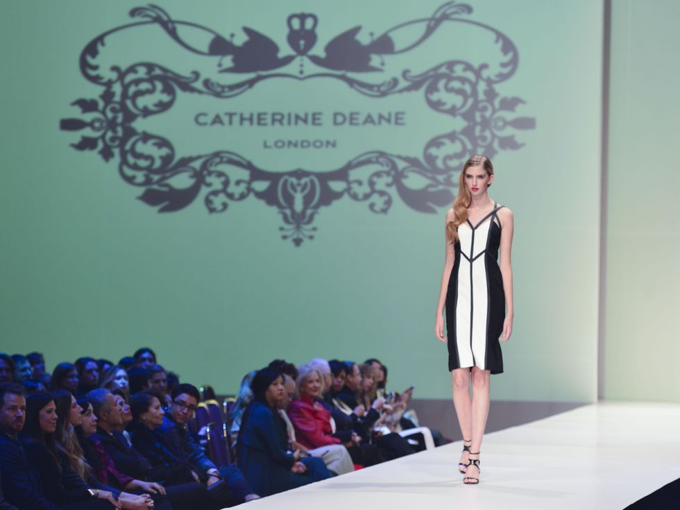 South African-born designer Catherine Deane followed with a collection that showed a return to her roots. A recent move from Hong Kong to London, where she had studied fashion design and started the collection, resulted in a more feminine lineup featuring subdued colors with intricate beading. "It was a feeling like I was coming home to a familiar place," she said.