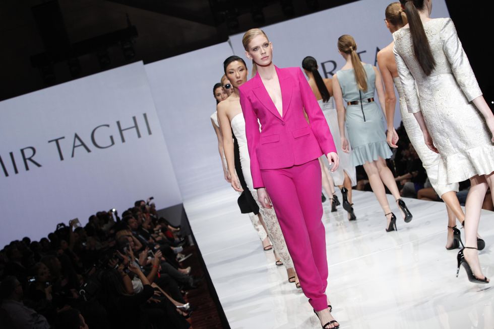 Even at his young age, Taghi recognizes that fashion is a business, so he featured fall looks that can be purchased now, along with his spring 2015 collection, which can be pre-ordered. His aesthetic features unadorned styles with clean lines, so that many can be worn now or still look classic five years from now.