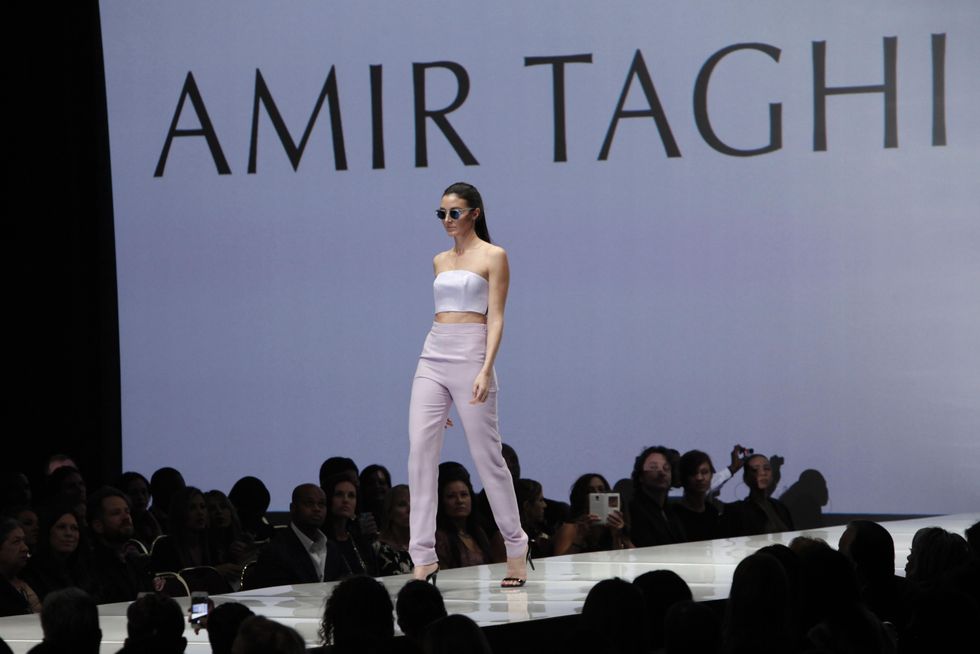 For fall, Taghi mixes shades of red in skirts, blouses and an eye-catching strapless gown. For spring, he features high-waisted pants, crop tops and short shorts in pastel shades, and a black racer back dress that flares at the hem, offering just the right amount of sexiness and modesty.