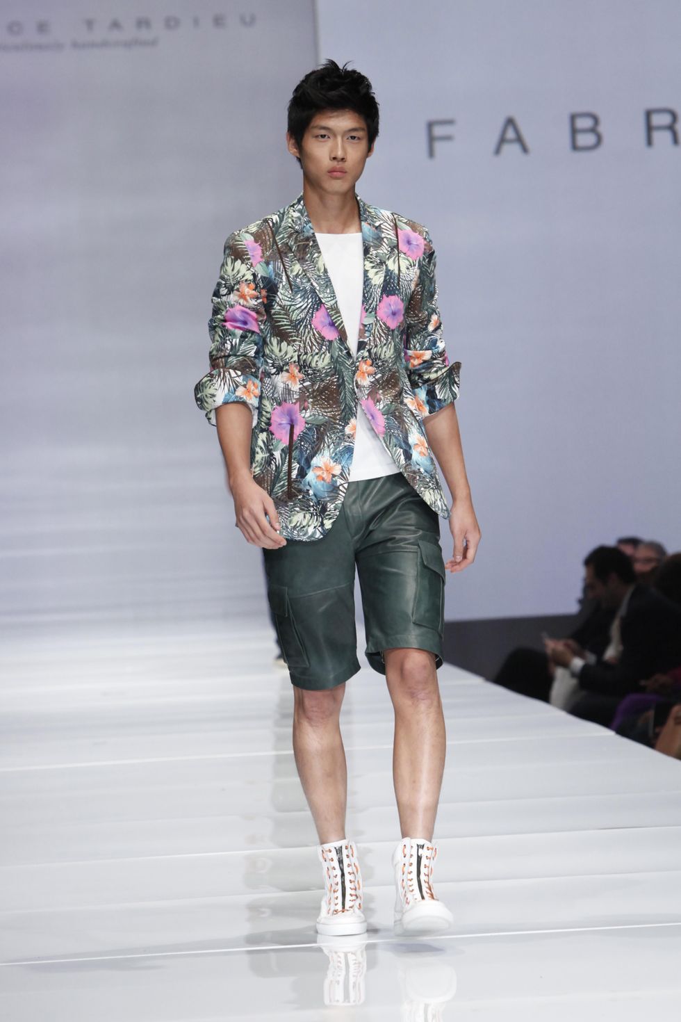 The models, indeed, seemed to have a sexy good time on the catwalk, displaying Tardieu's collection of luxurious urban street wear, ranging from woven loafers and zippered high tops to light cotton blazers with leather shorts, leather sweatpants and jackets in quilted fabrics.