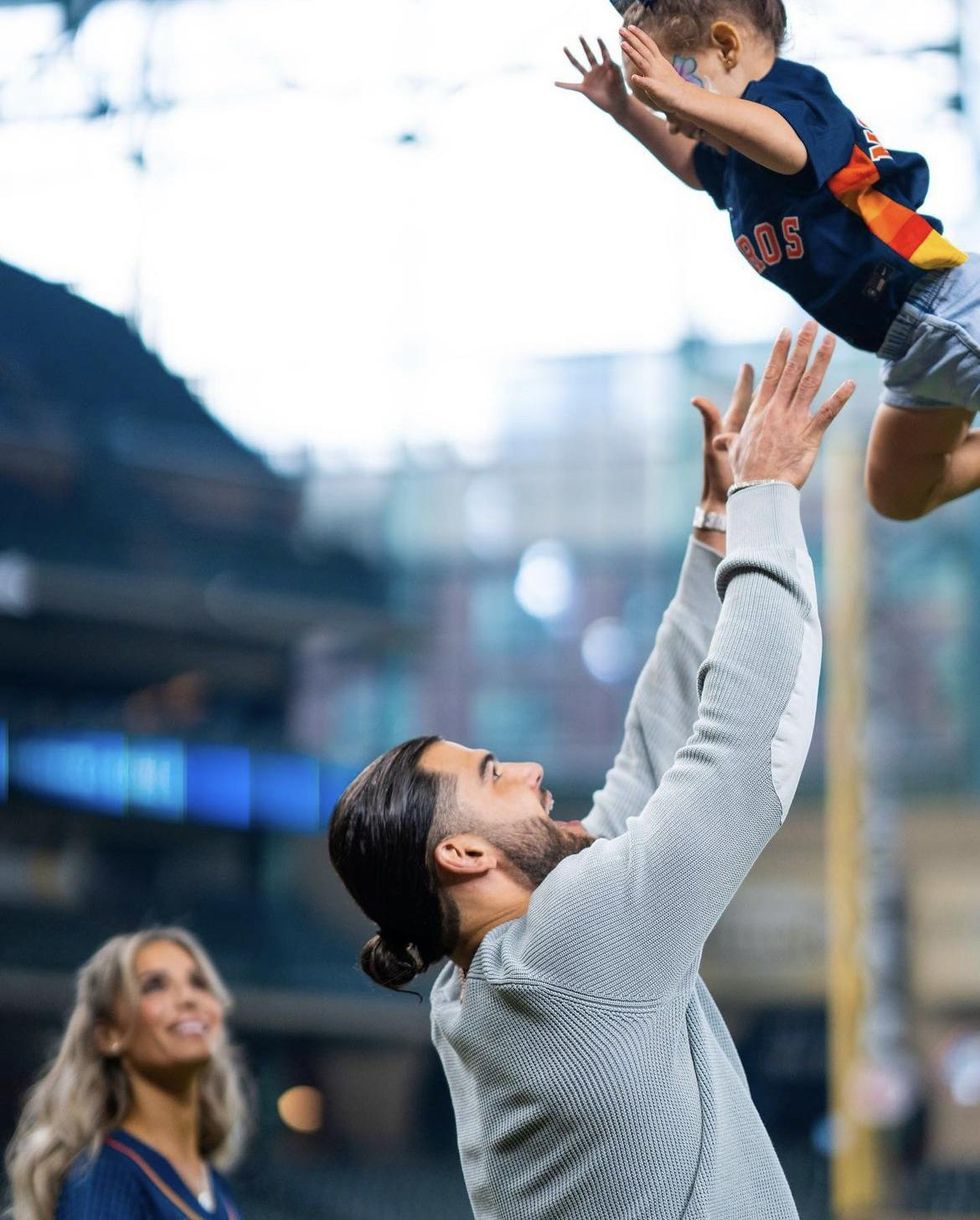 KM: The Astros games usually overlap my daughter’s bedtime routine, so I often try to get her ready for bed while simultaneously watching the games. Sometimes, she and I watch on the sofa together before heading to bed. She loves to watch the games, and we always try to attend if Lance is pitching at home.
