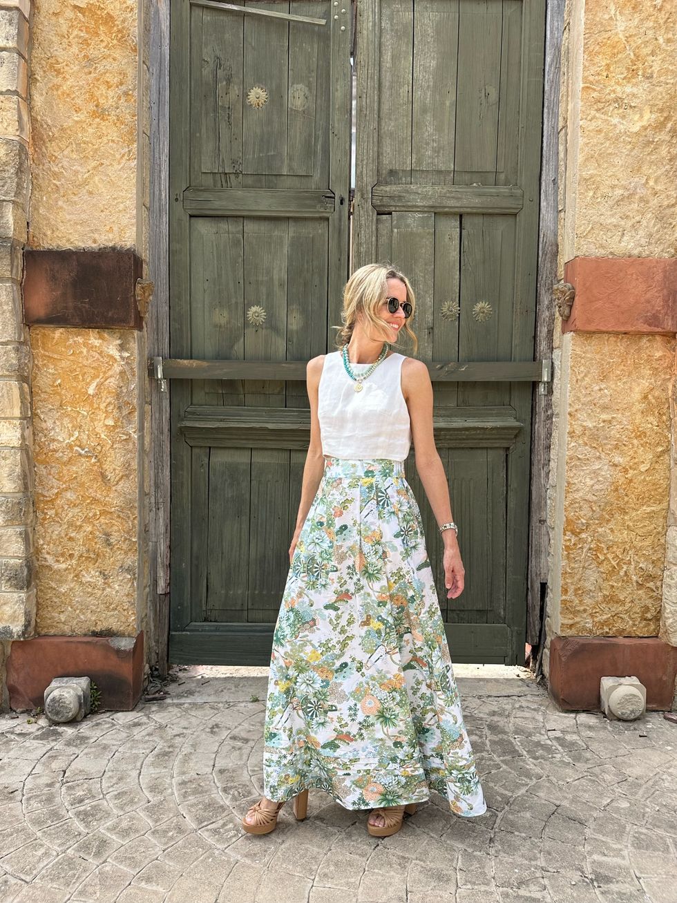 The spring collection from Mason's Daughter boasts a selection of feminine pieces that are versatile and easy to mix and match. The collection features delightful details such as ruffles, scalloped edges, and flowing maxi skirts. In addition to apparel, Zorich is also working on a line of linens, tabletop pieces, and unique gifts, all of which will be making their debut later this year.