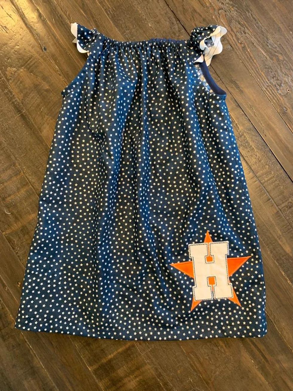 Even the littlest Astros fans deserve to be decked out in blue and orange. This adorable flutter sleeve dress from Etsy ranges in size from 3 months to 8 years - making it easy to dress your girly Astros fan in style.